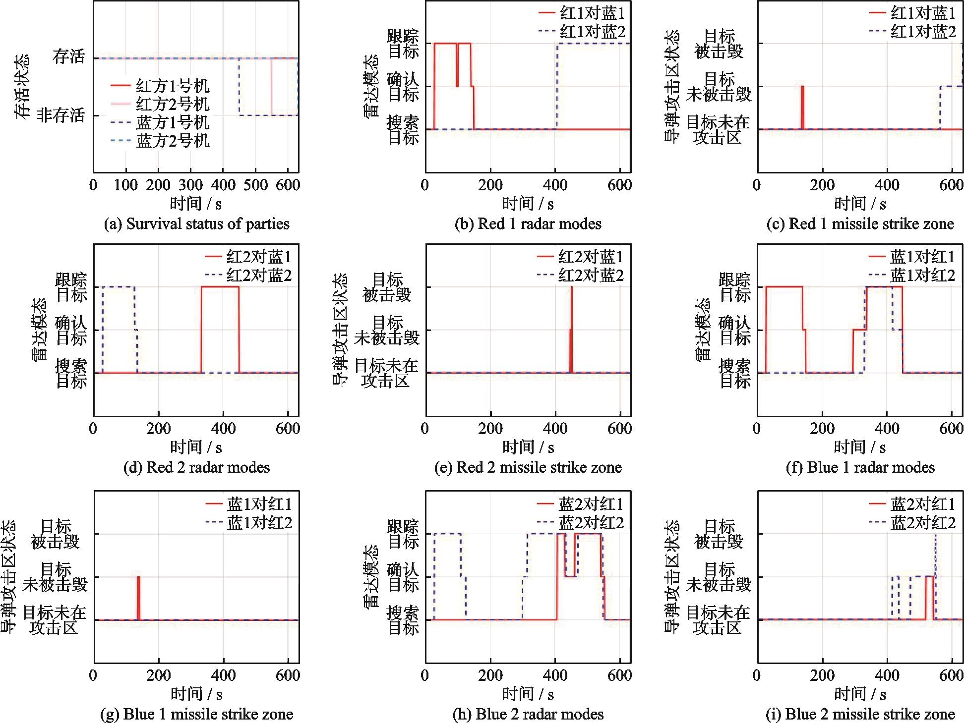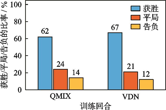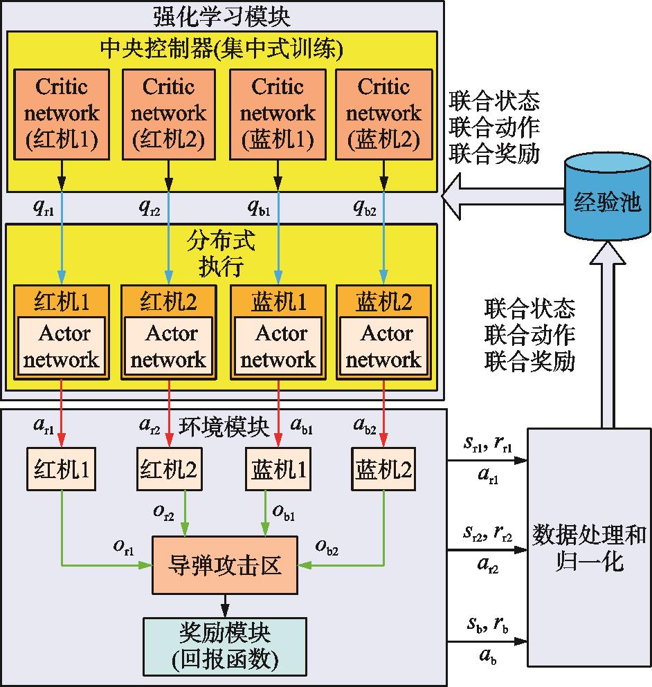 摘要:现代战争中的空战态势复杂多变,因此探索一种快速有效的决策方法十分重要。本文对多架无人机协同对抗问题展开研究,提出一种基于长短期记忆(Long and short-term memory, LSTM)和多智能体深度确定策略梯度(Multi-agent deep deterministic policy gradient,MADDPG)的多机协同超视距空战决策算法。首先,建立无人机运动模型、雷达探测区模型和导弹攻击区模型。然后,提出了多机协同超视距空战决策算法。设计了集中式训练LSTM-MADDPG分布式执行架构和协同空战系统的状态空间来处理多架无人机之间的同步决策问题;设计了学习率衰减机制来提升网络的收敛速度和稳定性;利用LSTM网络改进了网络结构,增强了网络对战术特征的提取能力;利用基于衰减因子的奖励函数机制加强无人机的协同对抗能力。仿真结果表明所提出的多机协同超视距空战决策算法使无人机具备了协同攻防的能力,同时算法具备良好的稳定性和收敛性。