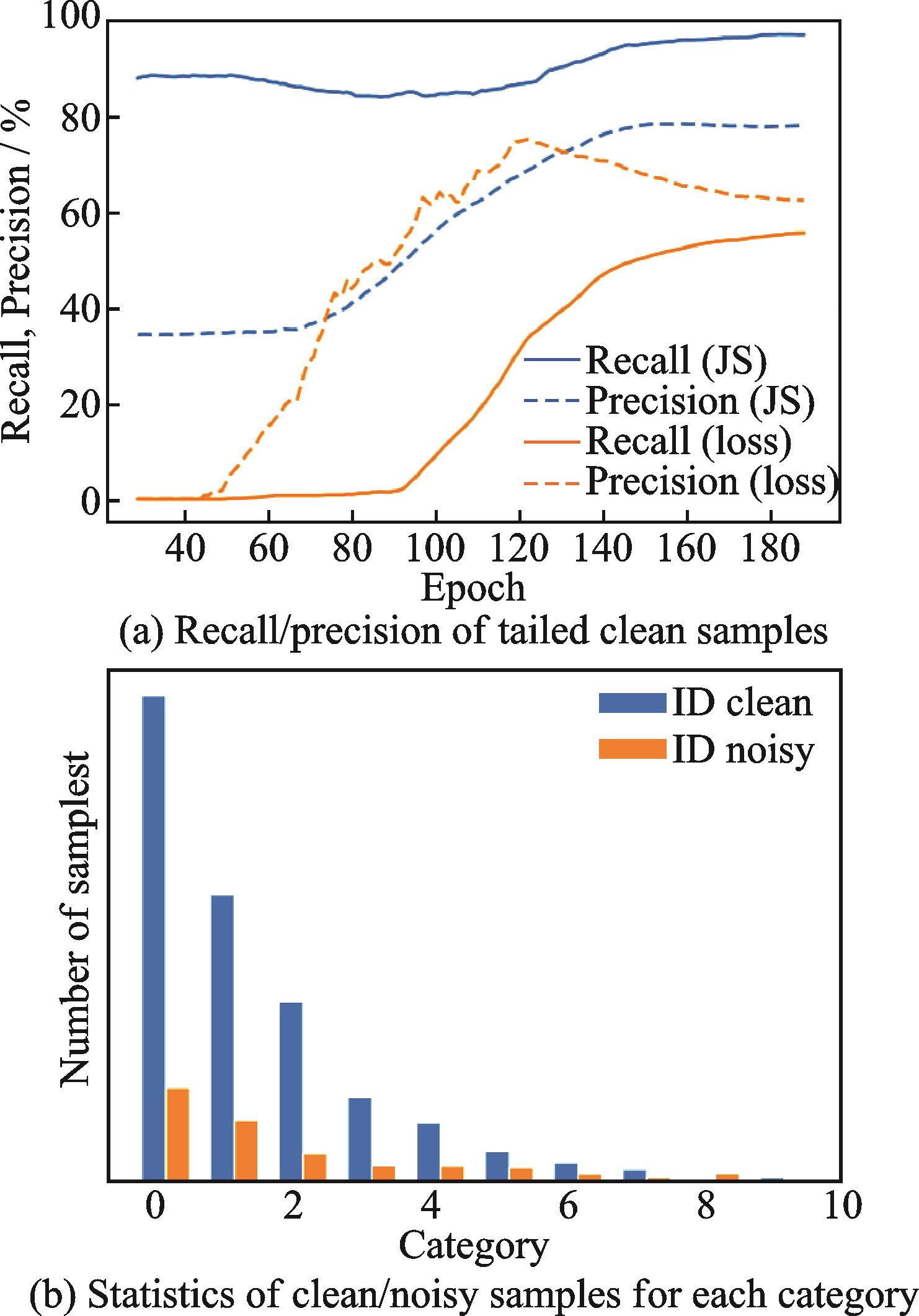 摘要:在训练深度神经网络时,实际应用数据常存在长尾类别分布、分布内噪声和分布外噪声等偏差。现有方法多单独解决类别不平衡或含噪声标签问题,很少同时考虑两者,尤其是两种噪声并存时。本文提出不平衡噪声标签校准(Imbalanced noisy label calibration, INLC)方法,用模型一致性预测筛选分布外样本并赋予均匀标签,增强模型对其检测能力;对分布内样本,利用 Jensen-Shannon 散度区分噪声,减少干净样本误分类,尤其针对尾部类别;引入额外语义分类器,缓解伪标签对多数类的偏向性以应对类别不平衡;采用基于强数据增强的一致性正则化方法提升模型泛化性能。在模拟和真实数据集上的实验表明,INLC 显著减轻了标签噪声和类别不平衡的影响,分类准确率较优异基线方法提高 2% 以上。