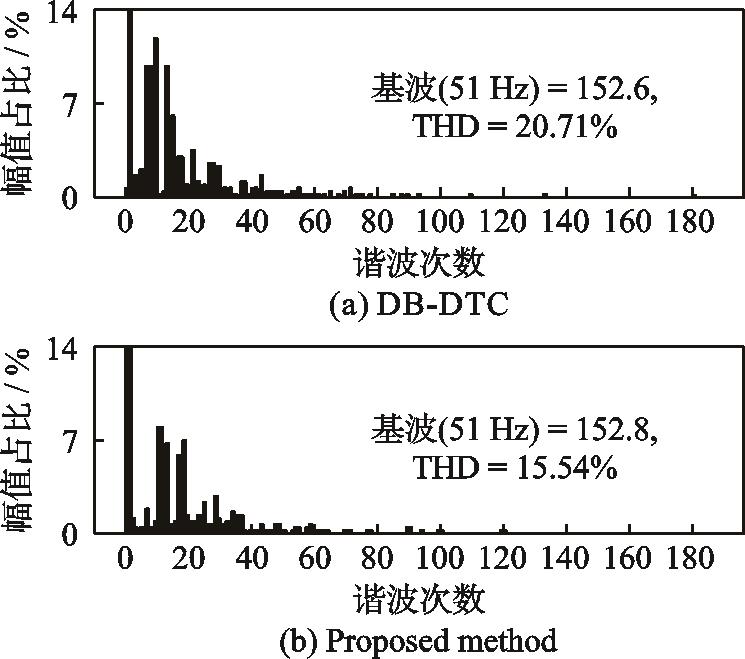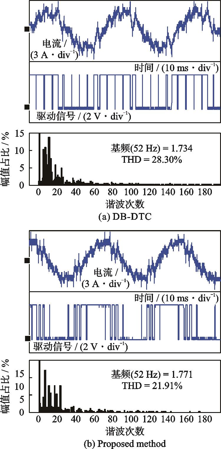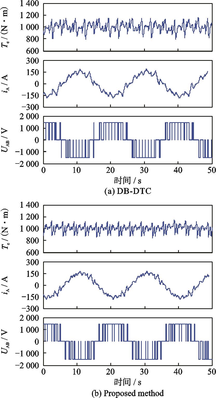 摘要:为降低大功率电驱系统的损耗,逆变器开关频率甚至小于1 kHz,此时相电流谐波含量严重。为解决该问题,提出了基于定子磁链轨迹跟踪(Stator flux trajectory tracking, SFTT)的同步空间矢量调制(Synchronized space vector modulation, SSVM)实现方法,在降低电流谐波的同时可以保证系统动态响应速度。首先,构建了同步空间矢量调制下的感应电机定子磁链稳态波形,分析了基于磁链轨迹跟踪实现同步脉冲生成和变频驱动的可行性;其次,论证了单一坐标系下的状态观测器发散问题,进而给出了混合坐标系下的状态观测模型,提高了低载波比下的磁链观测精确性和稳定性;最后,阐述了磁链轨迹跟踪的实现方法,基于转子磁链误差最小原理,提出了低载波比下的控制周期动态优化策略。实验结果表明,所提方法产生的同步电压脉冲可以降低电流谐波含量,并在2 ms时间内完成转矩的快速跟踪,且不同载波比下的脉冲模式可以顺利切换。