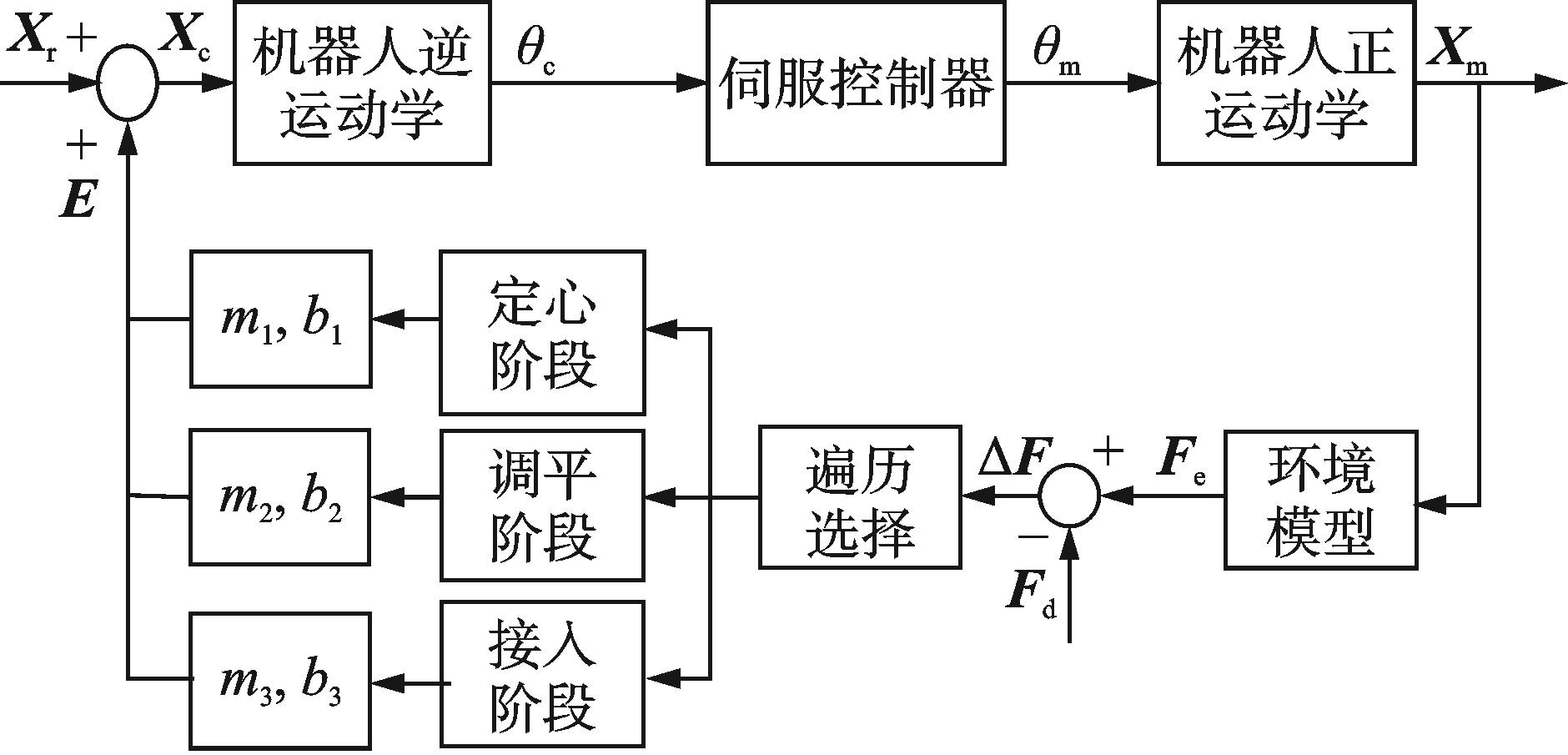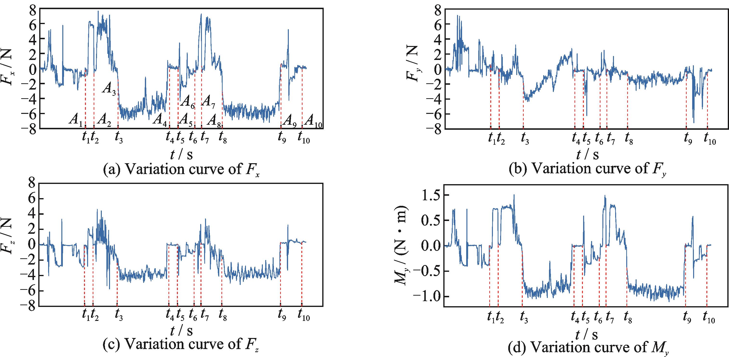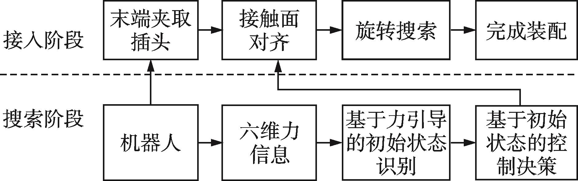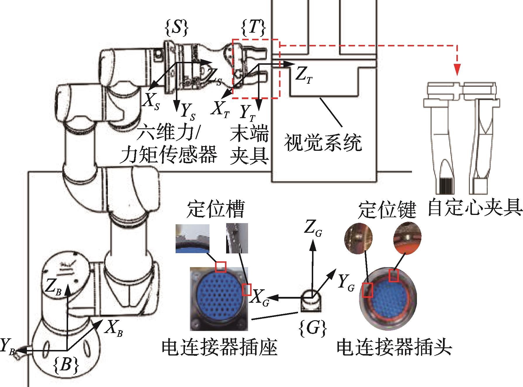 摘要:为解决航天电连接器自动装配过程中存在的视觉受限、针孔卡阻等问题,提出了基于插座外轮廓接触力反馈的自动装配技术,用于实现圆形航天电连接器的装配作业。结合电连接器在夹持状态下的受力分析,构建了基于“位置定心-姿态调平-旋转接入”的3阶段装配方法。首先,通过识别夹板与插座的接触象限来实现插座外轮廓的中心定位。其次,基于末端夹爪轴向运动前后接触力的变化来判断初始姿态偏转,并引导机器人沿扭矩方向实现自适应姿态调整。最后,采用旋转搜索算法完成电连接器接入,并在多组初始偏转误差条件下进行了多次实验,验证了所提方法的有效性。