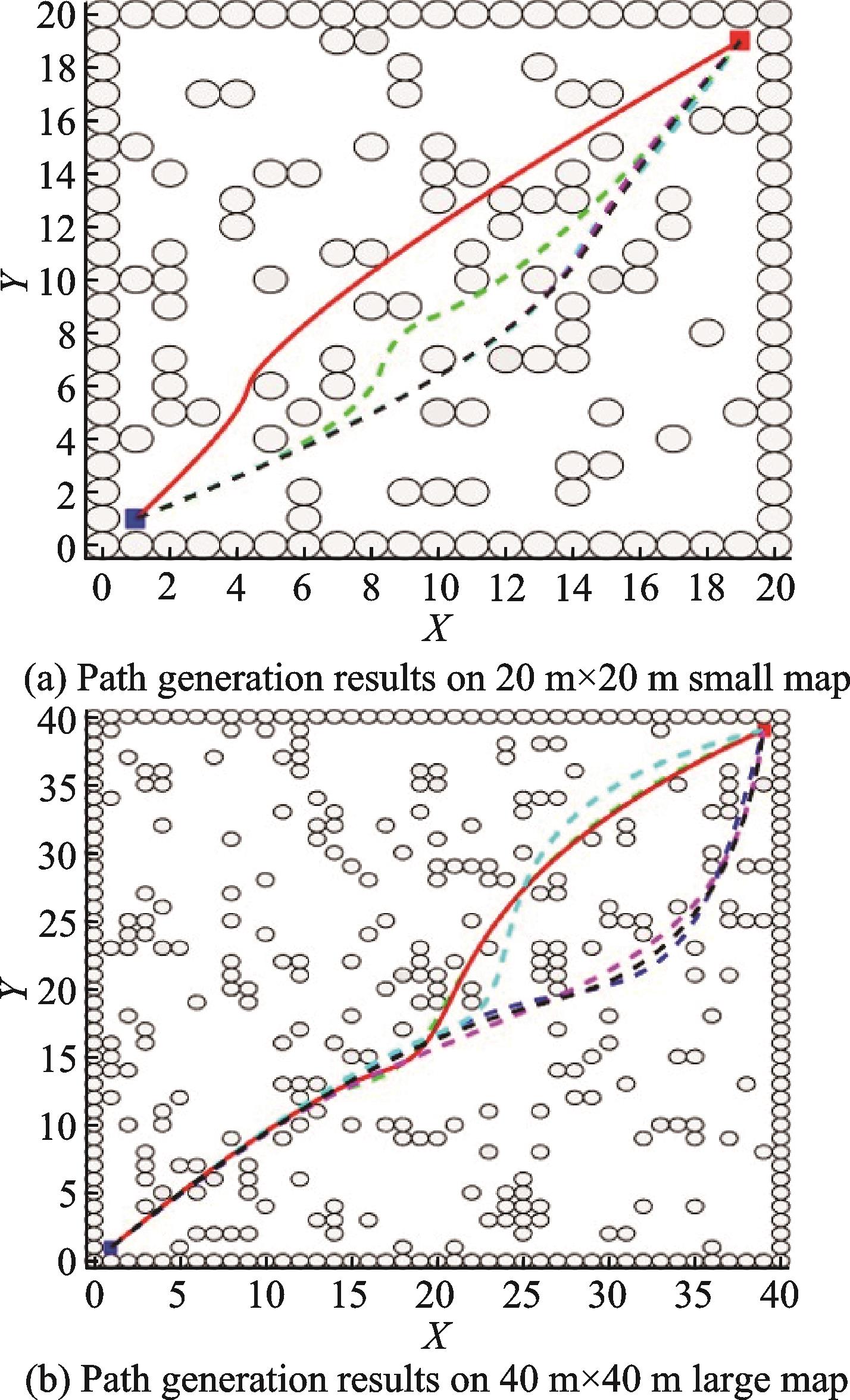 摘要:基于传统鸽群优化算法在处理高维优化问题时存在的局限性,提出一种改进的螺旋-动态鸽群优化(Modified spiral-dynamic pigeon-inspired optimization, MSDPIO)算法,用于解决机器人路径规划问题中的收敛速度慢和易陷入局部最优解等问题。首先,通过引入Logistic混沌映射初始化策略以扩大搜索范围;其次,设计螺旋搜索策略和动态反向学习策略以改进位置更新机制,提高算法的收敛速度和解的质量。同时,采用自适应余弦函数调整反向学习权重和改进地标操作提高算法的自适应能力与全局搜索能力。通过对10个CEC2017基准测试函数的实验,有效地评估了算法的性能。最后,将MSDPIO算法与基于改进的B样条曲线应用于不同尺度(20 m×20 m与40 m×40 m)地图的路径规划问题。仿真结果表明:在小规模20 m×20 m地图中较鸽群优化(Pigeon-inspired optimization, PIO)算法、多策略融合的天鹰优化(Multi-strategy improved aquila optimizer, MSIAO)算法、灰狼优化(Grey wolf optimizer,GWO)算法路径长度分别改进1.46%、1.43%、1.47%;在大规模40 m×40 m地图中收敛性能最大提升37.82%。