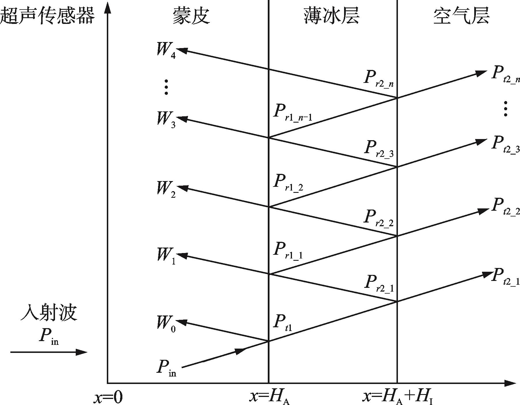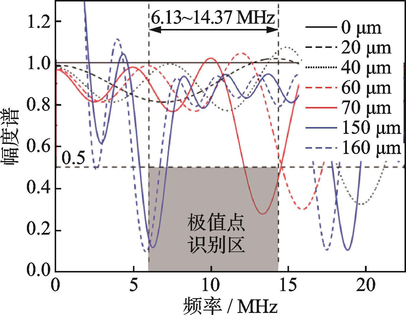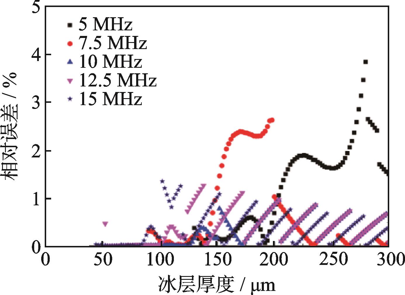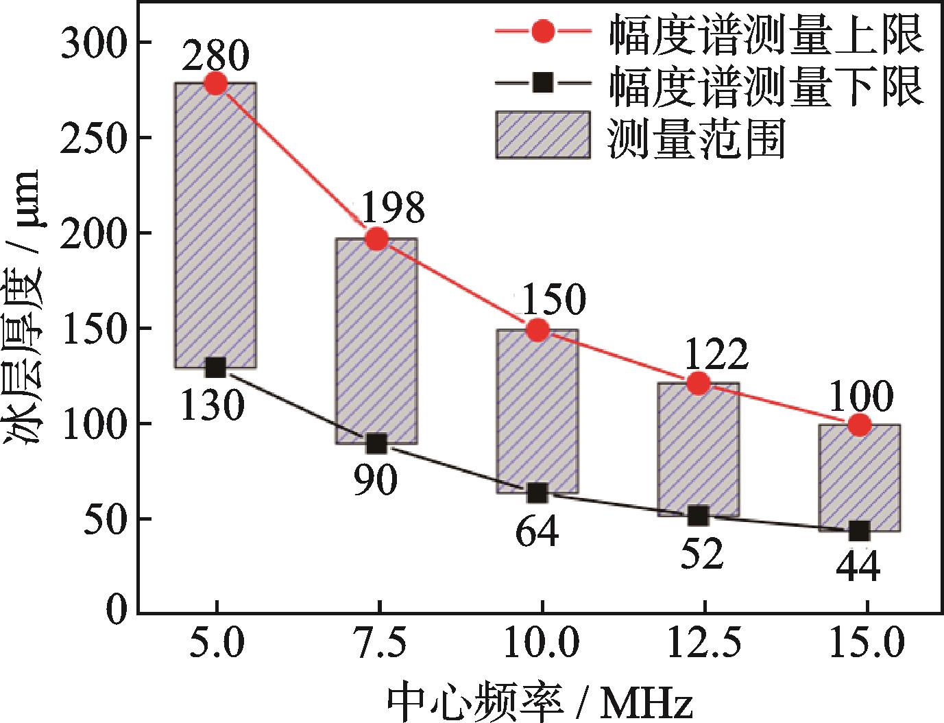摘要:针对飞机结冰初期超声测厚时回波信号混叠导致的薄冰层厚度无法定量测量的问题,提出一种可通过蒙皮-冰层界面超声回波声压反射系数幅度谱(Ultrasonic reflection coefficient amplitude spectrum, URCAS)谐振频率反演薄冰厚度的方法。采用数值计算获得铝制蒙皮表面结冰初期原始超声回波信号并计算URCAS,确定入射波幅度谱-6 dB带宽范围内对应的薄冰层厚度测量上下限;发展用于超声时/频信号特征参数提取的信号处理方法,对理论计算回波信号进行处理,提取URCAS谐振频率点进行薄冰层厚度反演。结果表明:基于URCAS的冰厚测量可以有效实现结冰初期混叠超声信号特征参数提取,冰厚测量下限约为时域分析测量下限的1/2,理论测量相对误差小于4%。