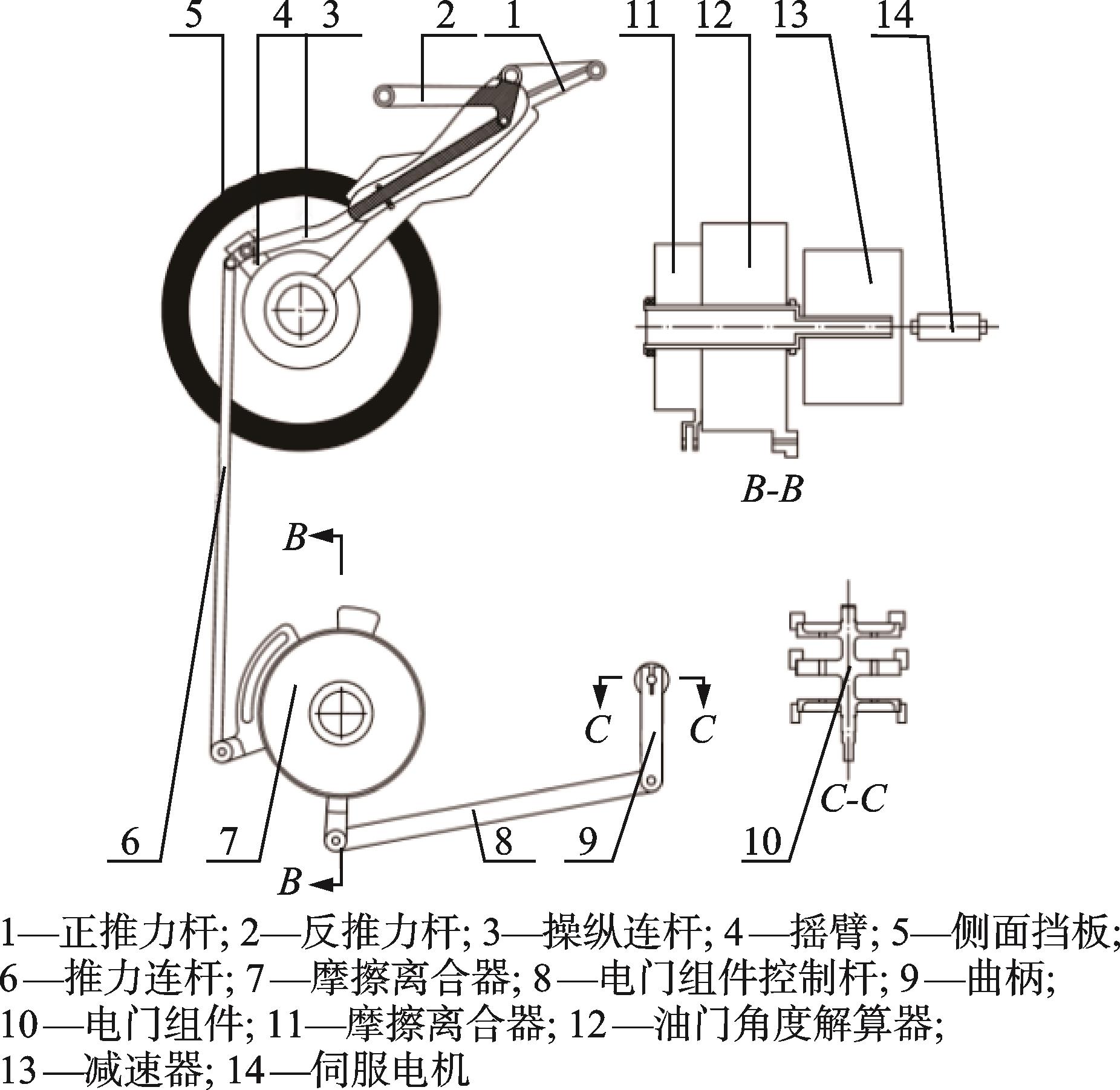 摘要:油门装置是飞机上对发动机控制的重要操纵装置,对其进行运动学与动力学分析是油门装置设计的理论基础。首先根据机构运动原理对油门装置进行简化,建立了运动学与动力学数学模型;其次根据上述建立的数学模型进行运动学和动力学仿真,得到油门装置在手动工作模式和自动工作模式下各个构件的位移、速度以及载荷特性。以某型飞机油门装置为例进行仿真,结果表明:油门角度解算器角度仿真误差不大于2.3%;摩擦离合器受力以及正/反推力杆驱动力矩呈二次曲线变化;油门伺服电机驱动力矩呈线性变化,且在电机启动时负载力矩最大;此外,油门装置的推力连杆长度变化对油门角度解算器角位移变化关系以及摩擦离合器受力与力矩变化影响显著。本文研究方法和结果可为大型客机油门装置运动学与动力学分析、结构设计与油门伺服电机选型提供参考。
