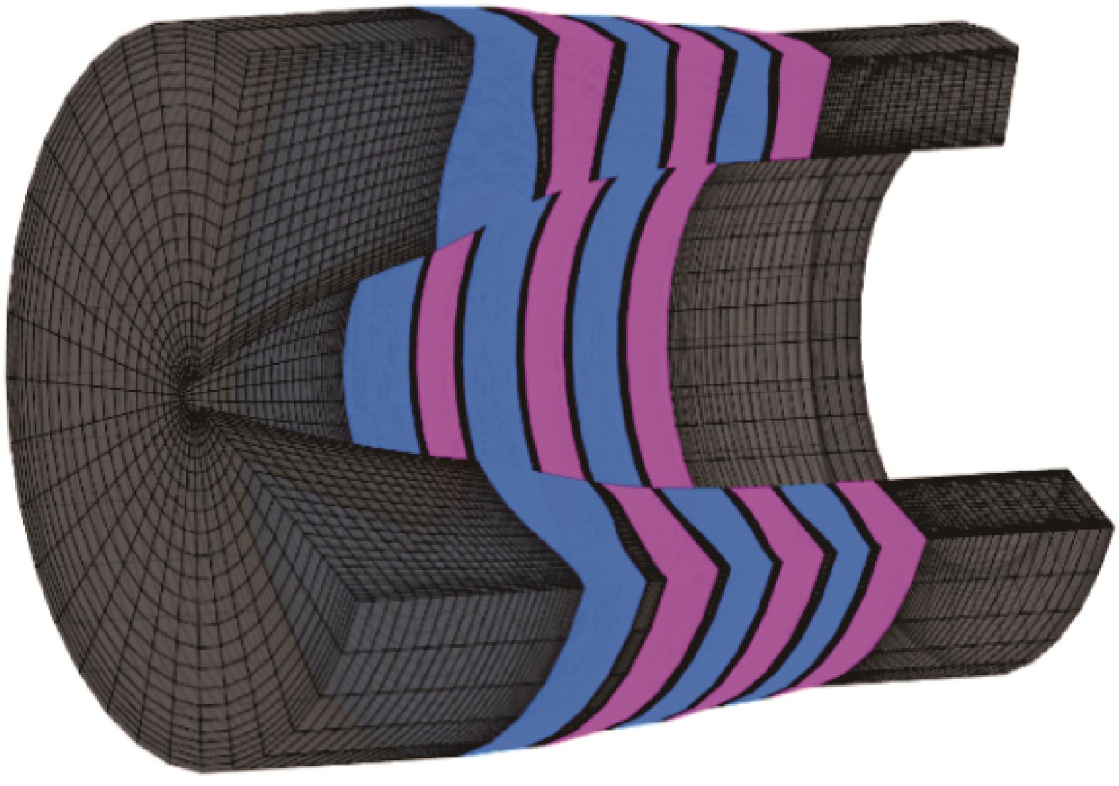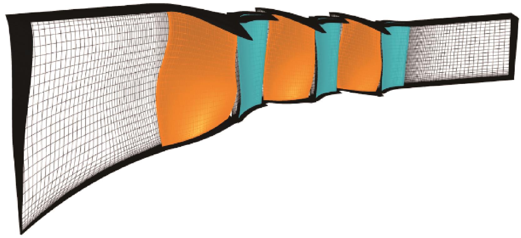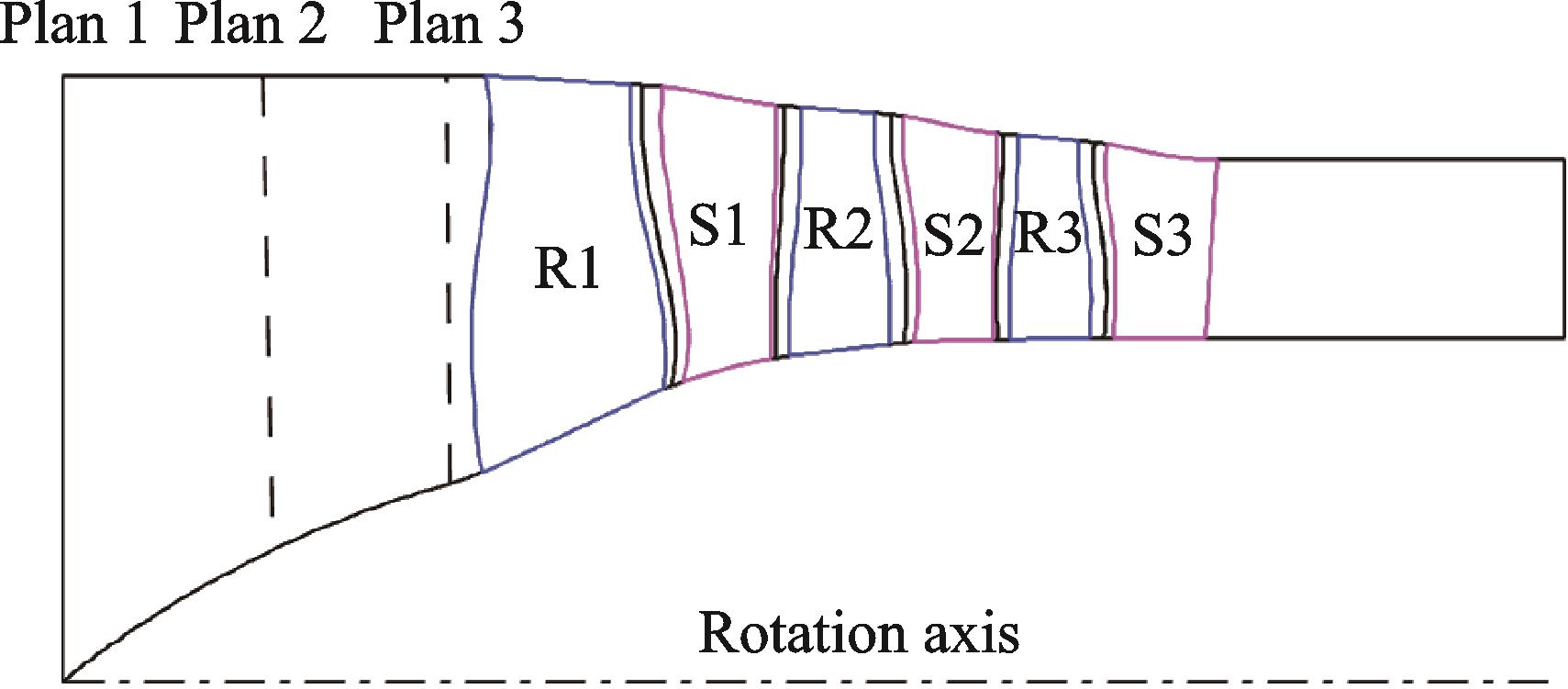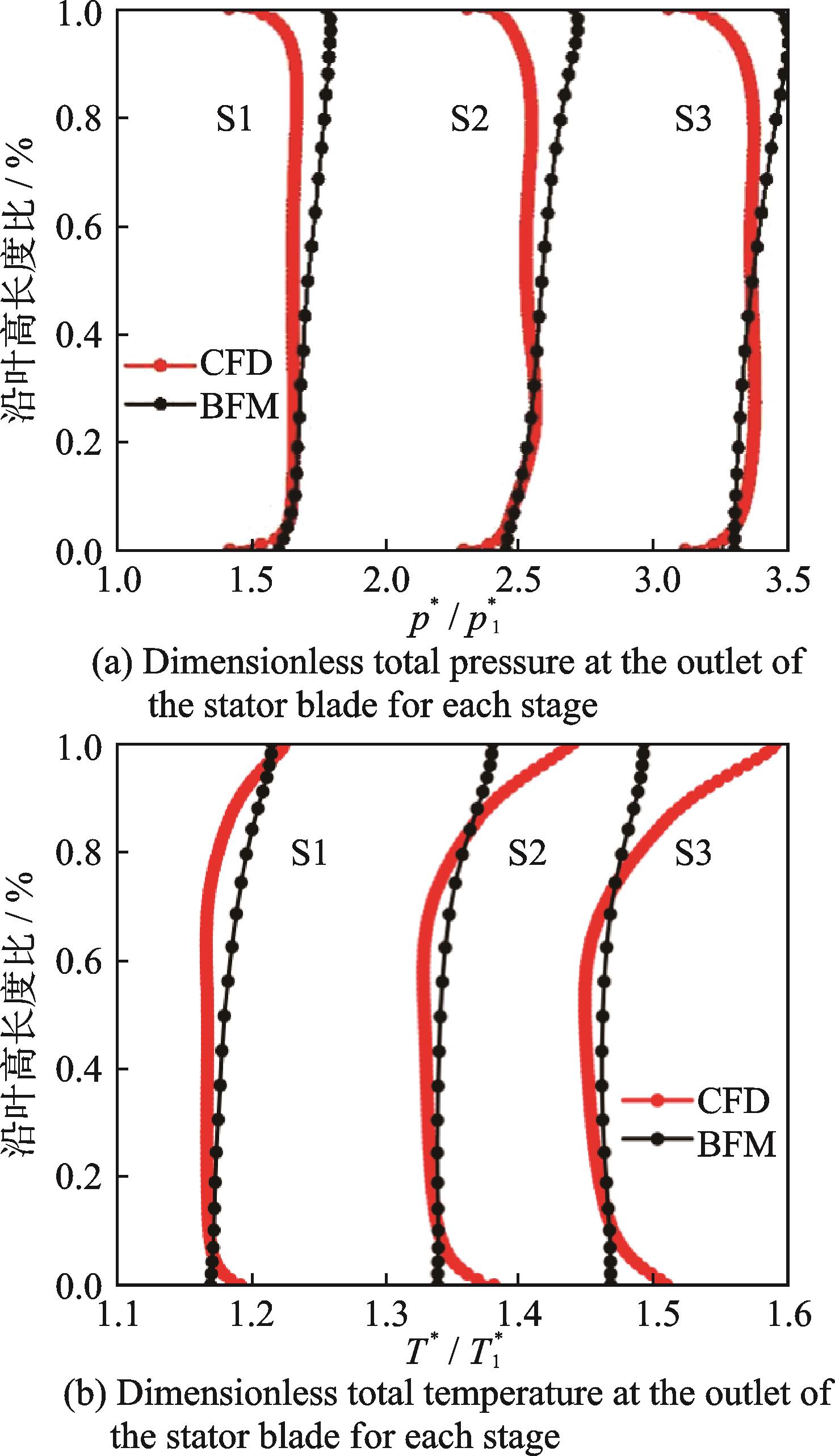 摘要:采用三维彻体力模型(Body force model, BFM)和计算流体力学(Computational fluid dynamics, CFD)两种计算方法研究周向总压畸变及不同旋流畸变类型对跨音三级风扇性能和稳定性的影响,并探究畸变传递特性及风扇内部流场特征。结果表明:BFM和CFD计算结果吻合良好;均匀进气下BFM和CFD计算特性最大误差不超过4%;120°周向总压畸变使风扇性能下降,稳定边界向下移动;轴向历程中,总压畸变强度整体递减,而总温畸变强度整体递增;同向涡旋流畸变使风扇压比下降,失速延迟,而反向涡旋流畸变对风扇的影响与之相反;对涡旋流中由于同向涡占主导地位,导致风扇压比特性低于均匀进气和反向涡旋流畸变,其特性线的变化与同向涡旋流畸变类似;对涡旋流畸变诱导了总压和总温畸变,而后经过各级的衰减作用,畸变强度整体呈衰减趋势。