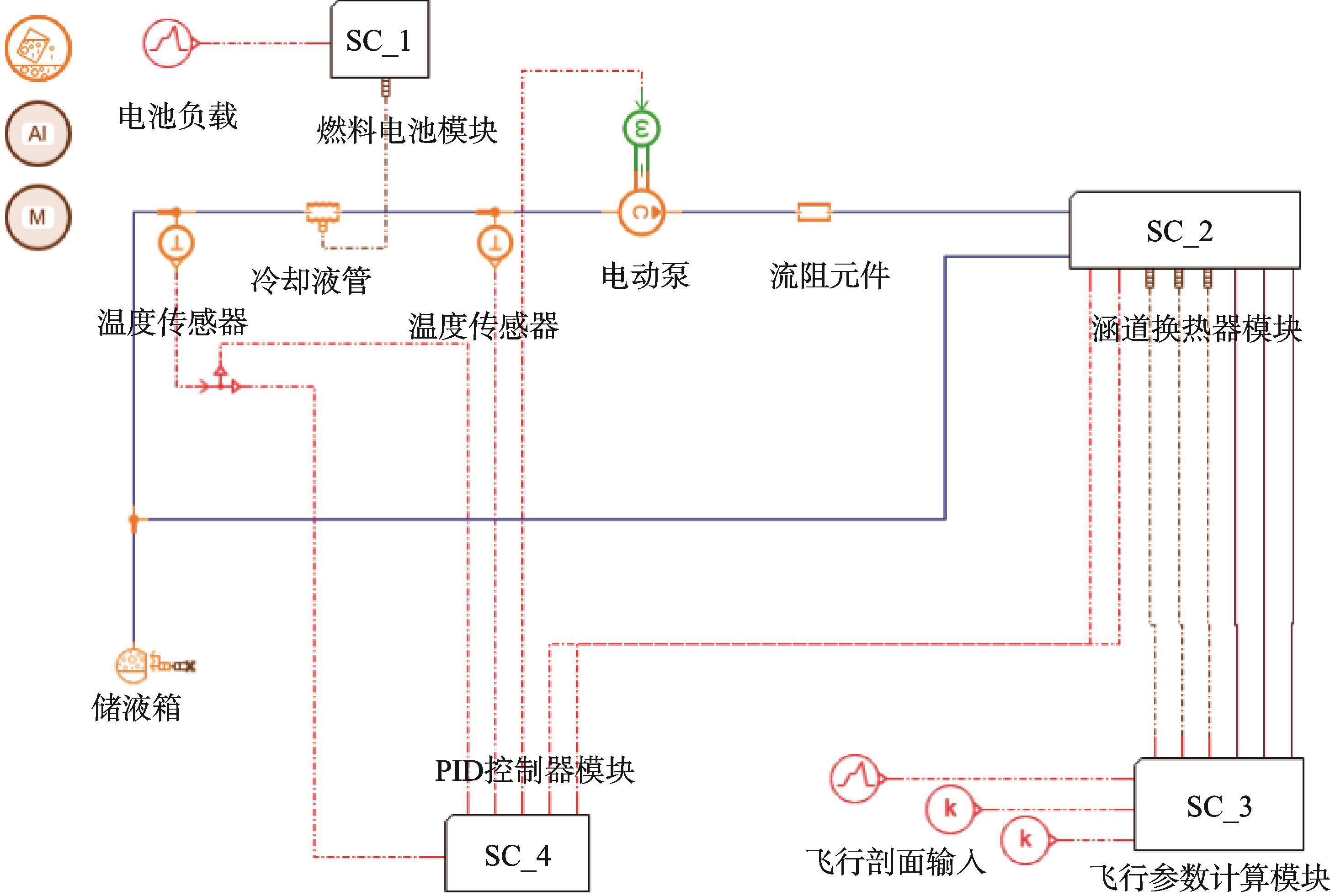 摘要:燃料电池无人机是实现绿色低碳航空的重要技术路径,随着无人机向大型化、长航程发展,大功率燃料电池在无人机复杂飞行剖面下的热管理问题变得更加复杂。本文提出了一种基于涵道撑杆结构件的换热器设计,该设计充分利用了螺旋桨后气流进行散热而不附加过多系统质量,同时基于涵道换热器提出了应用于无人机的燃料电池热管理系统方案。采用Amesim平台,结合典型无人机飞行剖面,建立了热管理系统仿真模型并开展了数值模拟研究。研究结果表明:(1)该热管理系统能够较好地实现燃料电池温度控制,电池入口载冷剂温度不超过61.3 ℃(目标值60 ℃),进出口载冷剂温差不超过11.1 ℃(目标值10 ℃),均在误差范围内,验证了涵道换热器方案的可行性;(2)涵道换热器总数相同的情况下,各换热器模块的换热器数量需匹配燃料电池各阶段的功率以及电动泵的流量特性进行设计。