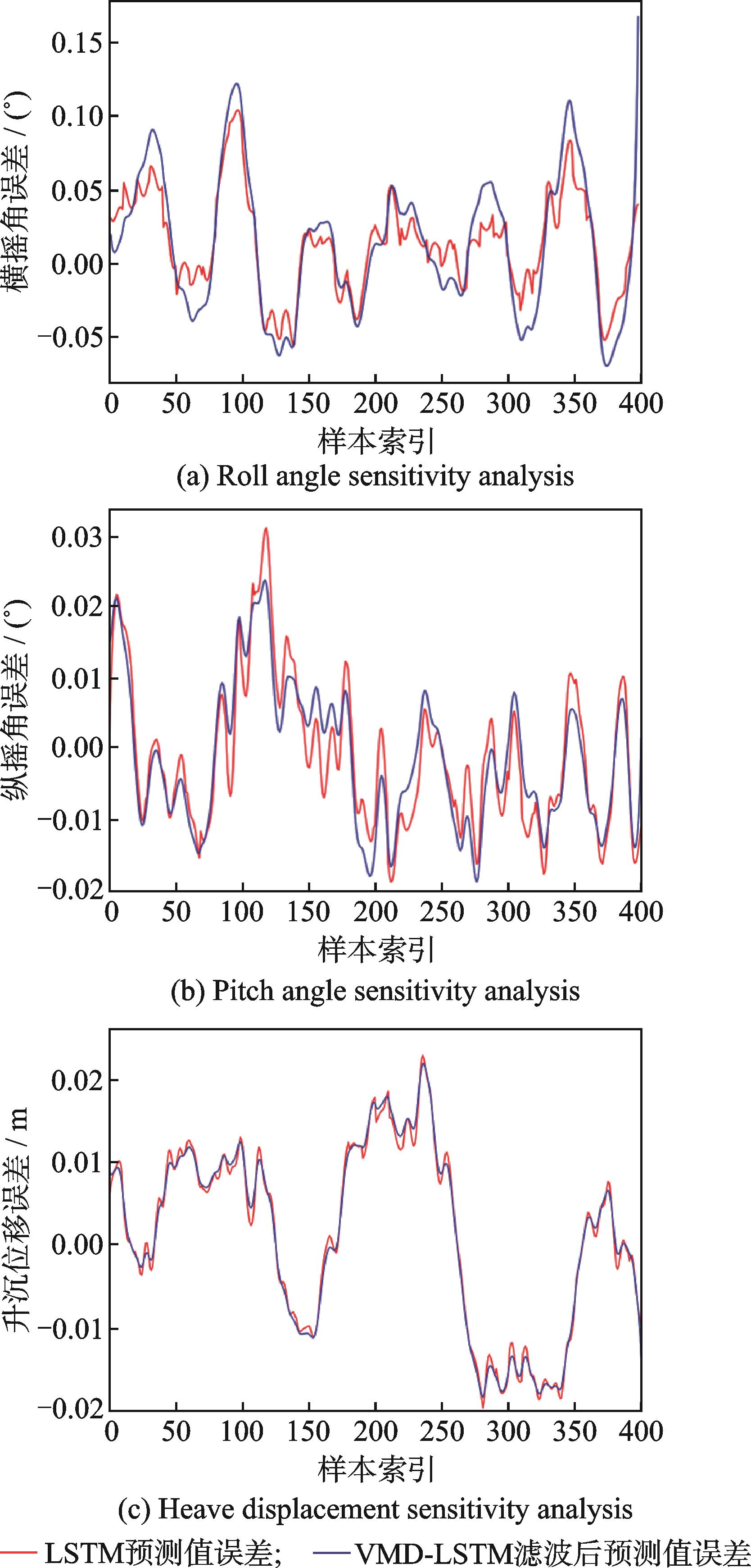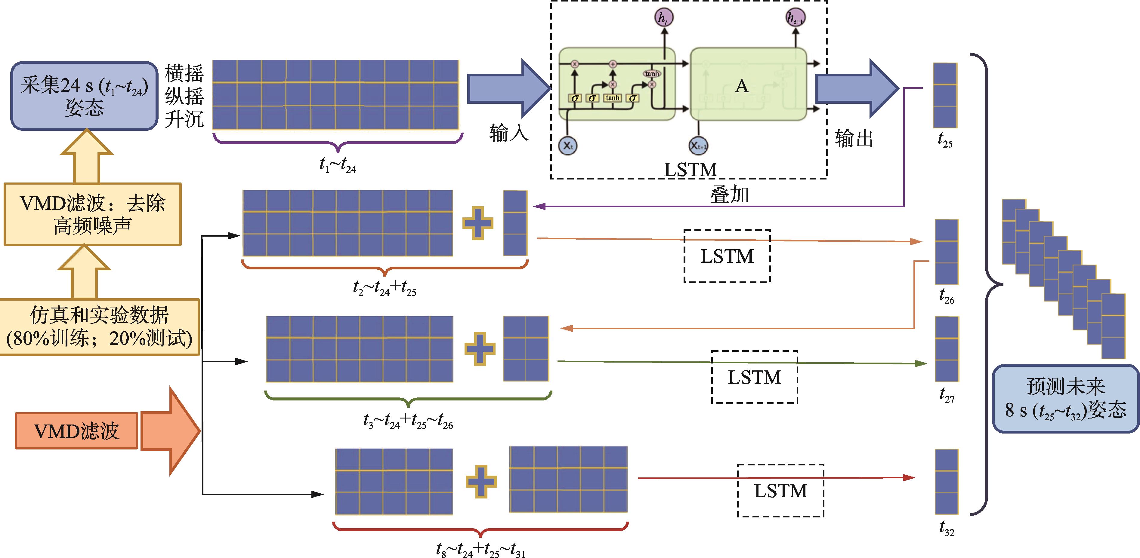 摘要:为提高舰载靶机发射过程中船舶运动姿态的预测精度,使用基于长短期记忆(Long short-term memory, LSTM)网络的船舶姿态预测方法。针对长时预测导致的误差累计问题,提出了改进窗口滑动法,通过对每次预测结果进行变分模态分解(Variational mode decomposition, VMD)滤波,消除累积误差引起的预测结果振荡。通过有限元仿真及自主设计的船模实验平台开展波浪水池试验,采集横摇、纵摇、垂荡等关键姿态参数的时序数据。实验设置涵盖1级至5级典型海况条件。实验结果表明,该模型在升沉位移、横摇角及纵摇角预测中,均方误差(Mean squared error, MSE)最大降幅可达99.4%,MAPE降低至2.11%,验证了其工程应用的有效性。研究成果可为舰载靶机发射引导系统提供高精度的船舶运动态势预判,对提升着舰安全性具有重要工程价值。