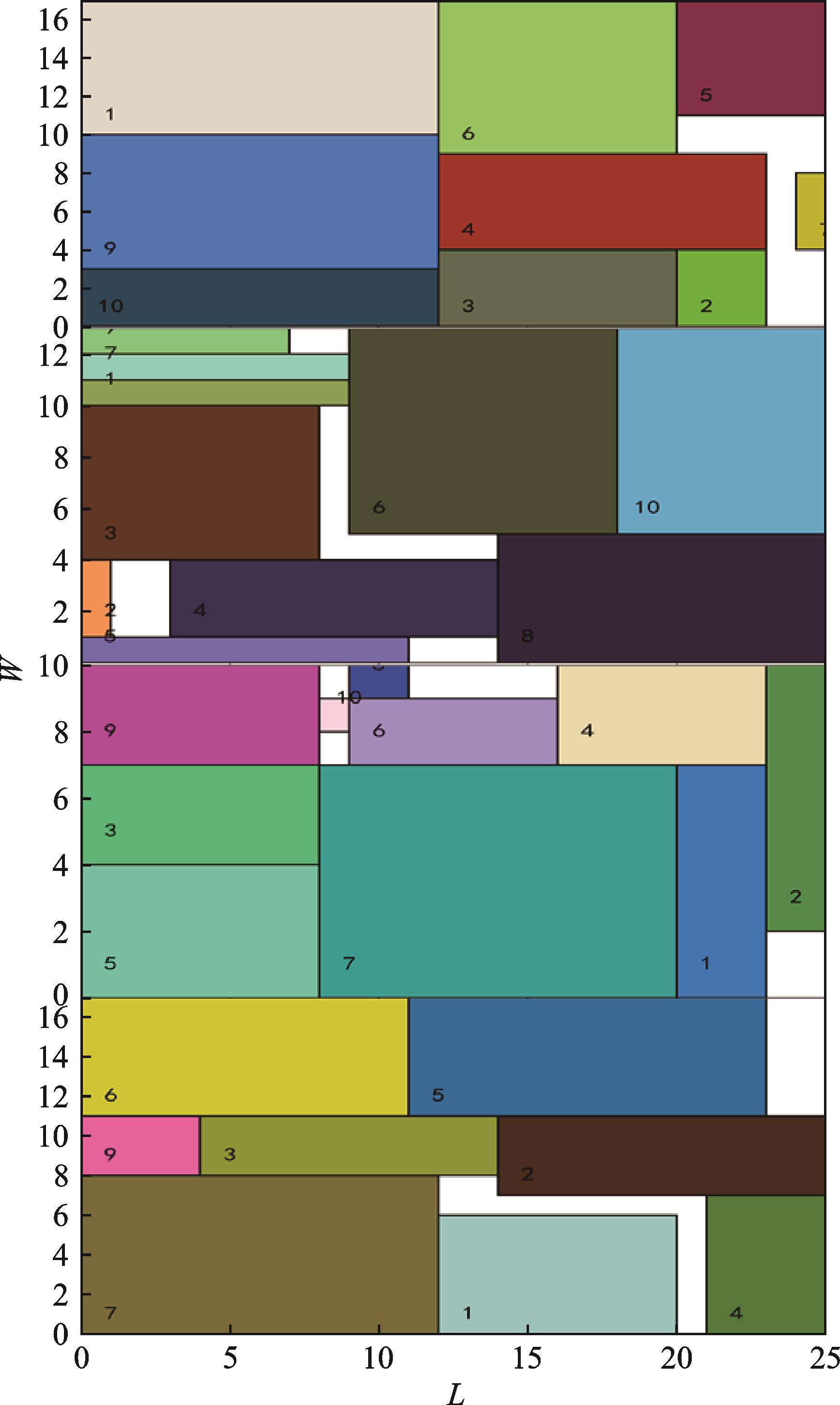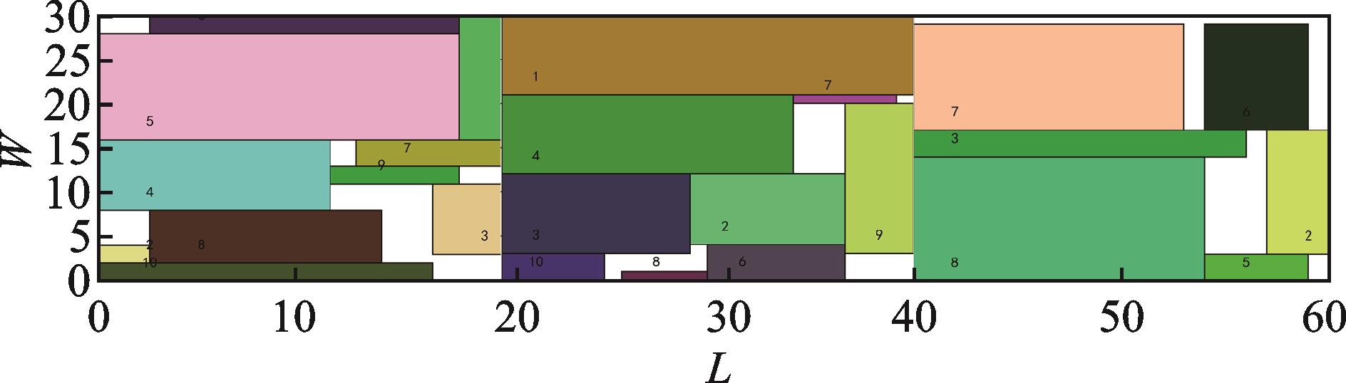 摘要:飞机货舱中非集装器的配载是重要的运输环节,而如何保障非集装器的配载,是亟须研究的重要内容。其中二维矩形切割排样问题是解决非集装器运输的重要理论方法。二维矩形切割排样理论在原材料切割、装箱等问题中有着广泛应用,但尚无很好的求解算法。该方法会因求解速度而拖累整个实际生产作业进度。因此,本文提出了二维切割排样的混合整数线性规划(Mixed-integer linear programming, MILP)模型,模型目标是以矩形板面积利用率和切割排样价值最大为目标,模型考虑了不超边界、不重叠、可正交旋转等限制。设计了启发式分组策略的求解算法:首先基于启发式把矩形块分组为不同组别的小矩形块,降低变量和计算规模;其次,采用混合整数规划精确算法对每个小矩形块进行切割排样。以经典Benchmark实验数据为例,将Gurobi分组与Gurobi、CutLogic2D、基于遗传算法和最低水平线算法的混合算法对比。实验结果表明,CutLogic2D综合求解质量和速度较好;Gurobi分组方法是一种启发式算法,总体上要稍差于CutLogic2D;遗传算法和最低水平线算法因是启发式算法且未使用分组策略,和Gurobi分别在部分算例上求解时间相对较长,达到了7 200 s,这是无法接受的。