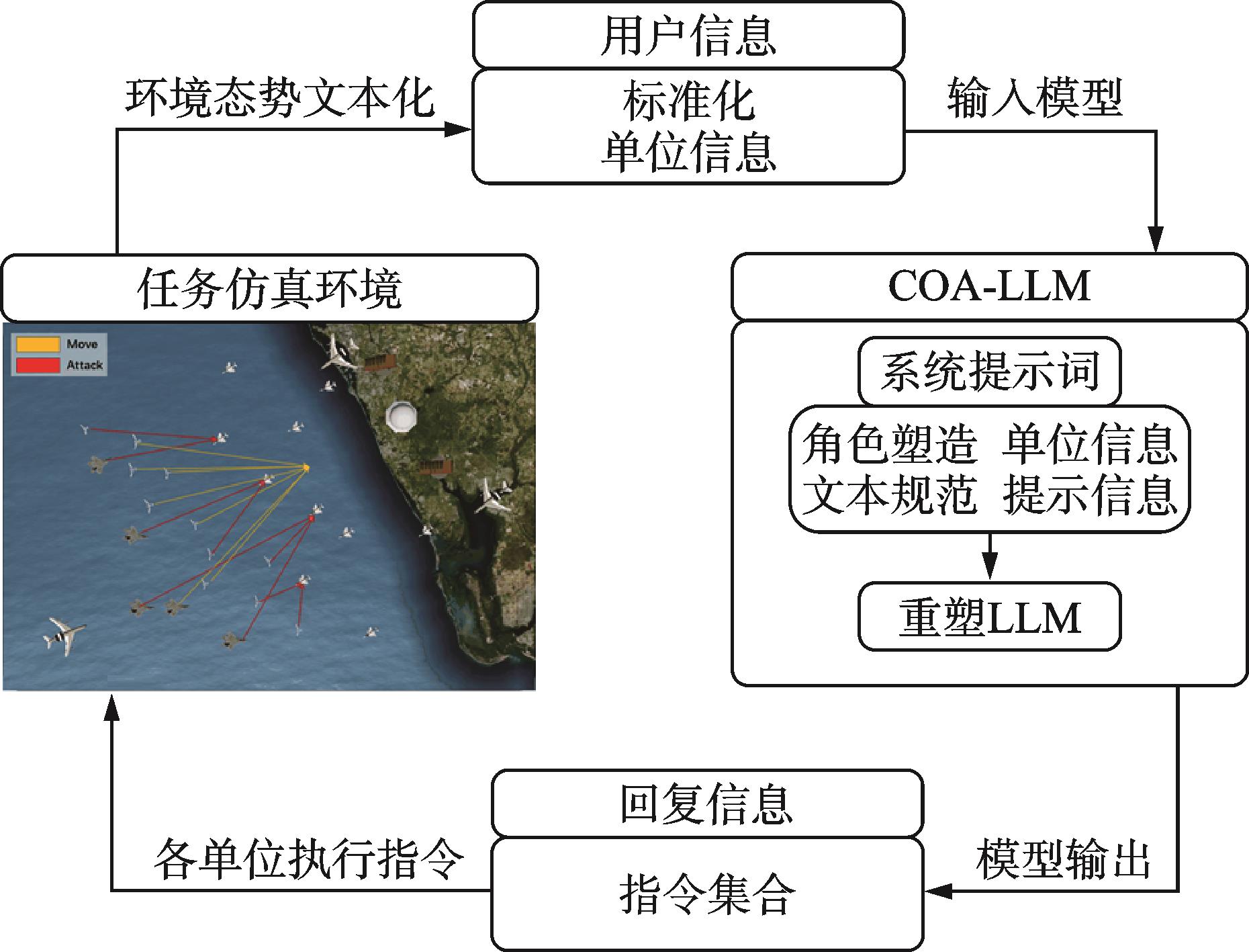 摘要:针对大规模动态作业环境中多域协同决策的复杂性与实时性挑战,提出了基于大语言模型的集群协同决策框架(Courses of action-large language models,COA-LLM),通过提示词工程、环境态势文本化与多级指令解析,构建了“感知-决策-执行”闭环响应系统。突破了传统目标分配方法仅能处理离散任务的限制,实现了离散任务分配与连续空间决策的统一。最终,在仿真系统中构建了集群协同场景,使用了GPT与DeepSeek等通用大模型,并与其他基于优化算法和机器学习的算法进行了对比实验。实验结果证明了COA-LLM框架的可行性和有效性,框架的输入灵活性与输出可解释性,为智能指控系统的发展提供了新范式。