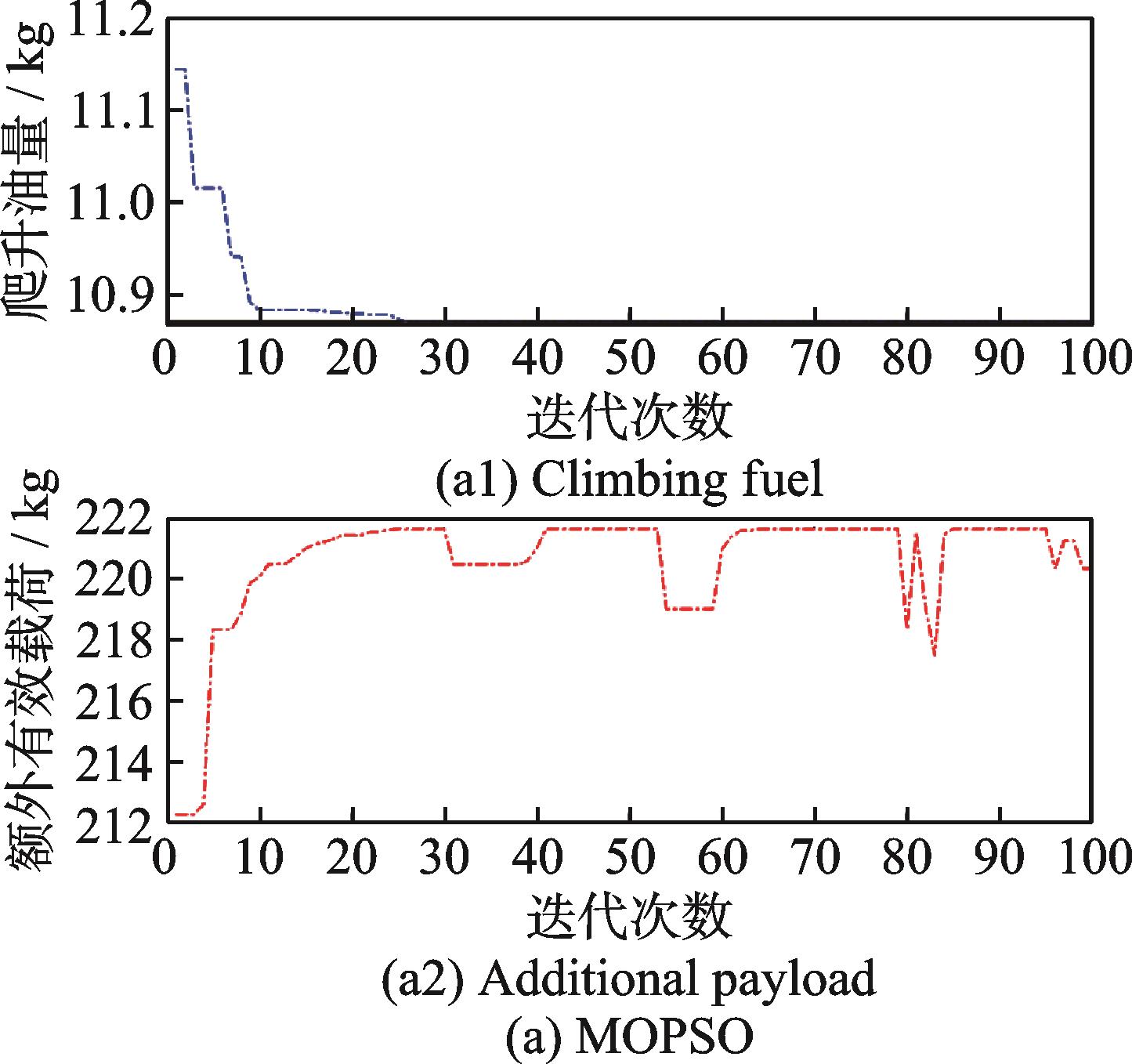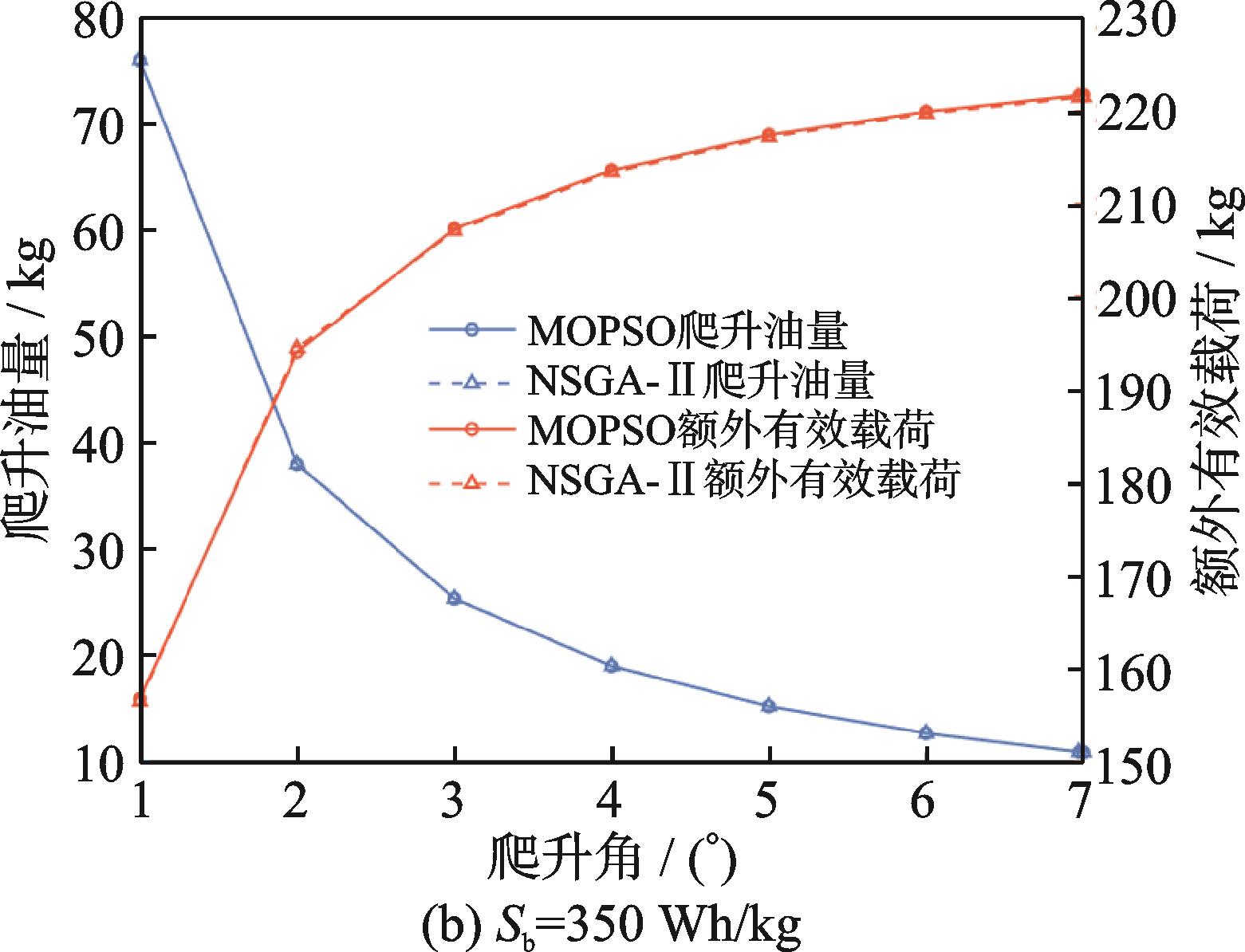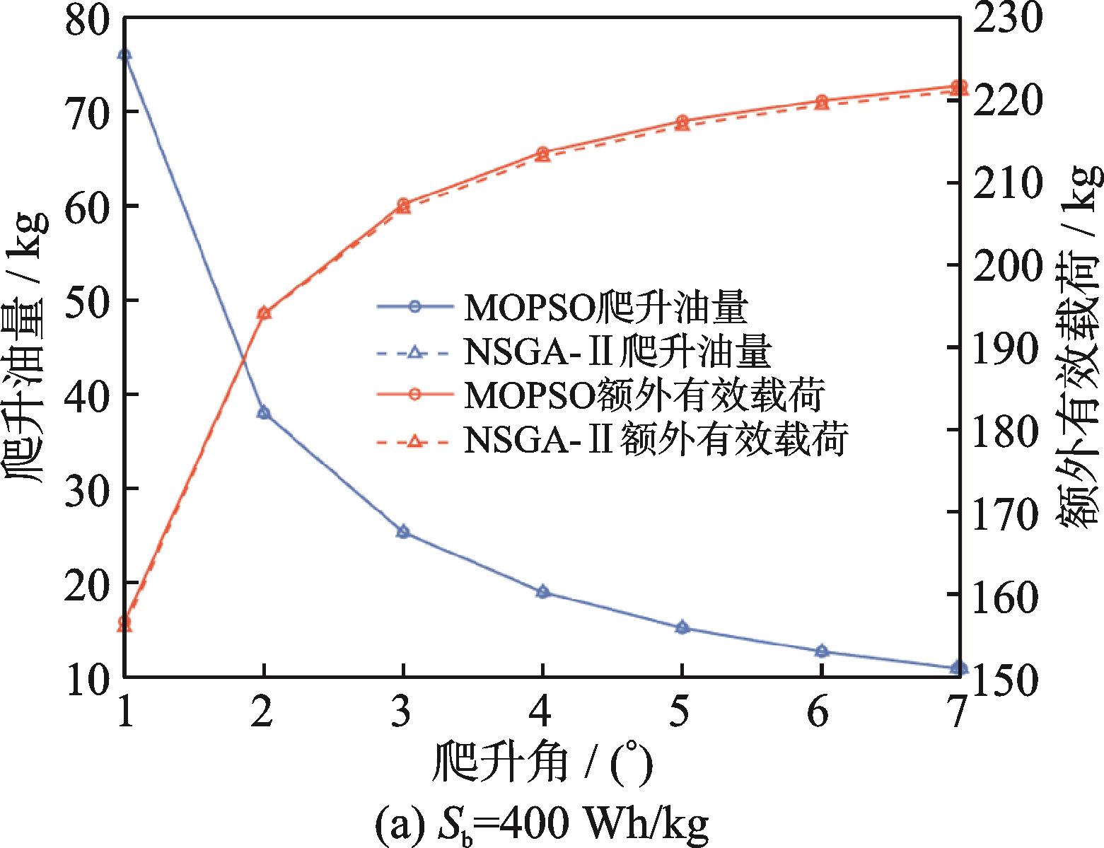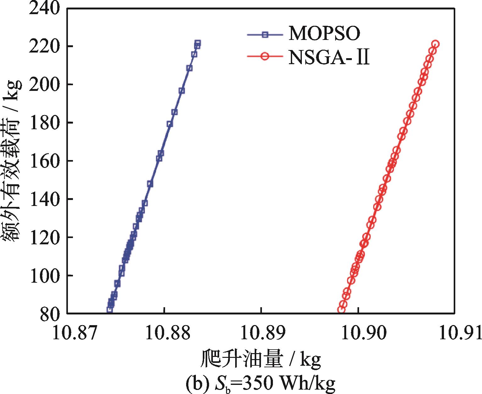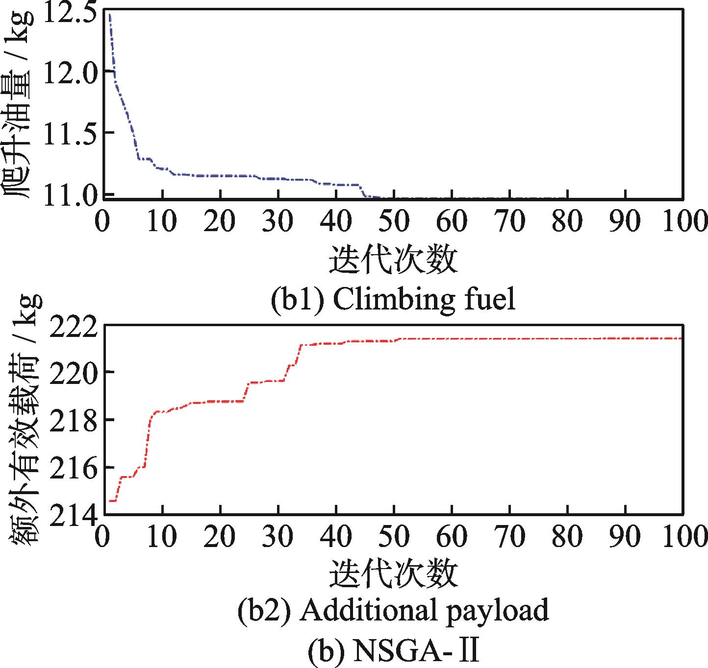 摘要:为了分析混合动力比和电动机数量对小型混合动力飞机爬升性能的影响,以及爬升阶段不同性能参数的选择。根据小型混合动力飞机气动模型和串联结构系统模型,以混合动力比、爬升速度、爬升角、电动机数量和起飞质量作为优化变量,以爬升油量和额外有效载荷作为目标函数,建立混合动力飞机爬升性能优化模型。分别采用多目标粒子群算法和非支配排序遗传算法对某型混合动力飞机进行优化求解和对比分析,并将两种算法的优化结果与国外研究结果进行对比,证明了优化结果的有效性。优化结果表明:两种优化算法对减少飞机爬升油量和增加额外有效载荷均有良好的优化效果。要实现爬升油量最小和额外有效载荷最大的目标需满足:混合动力比为0.99,爬升速度为51 m/s,爬升角为7 °,起飞质量在1 830 kg至2 200 kg之间。