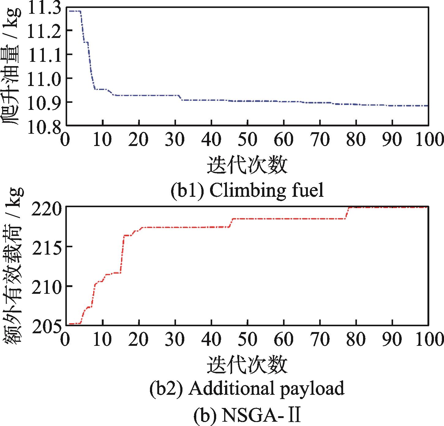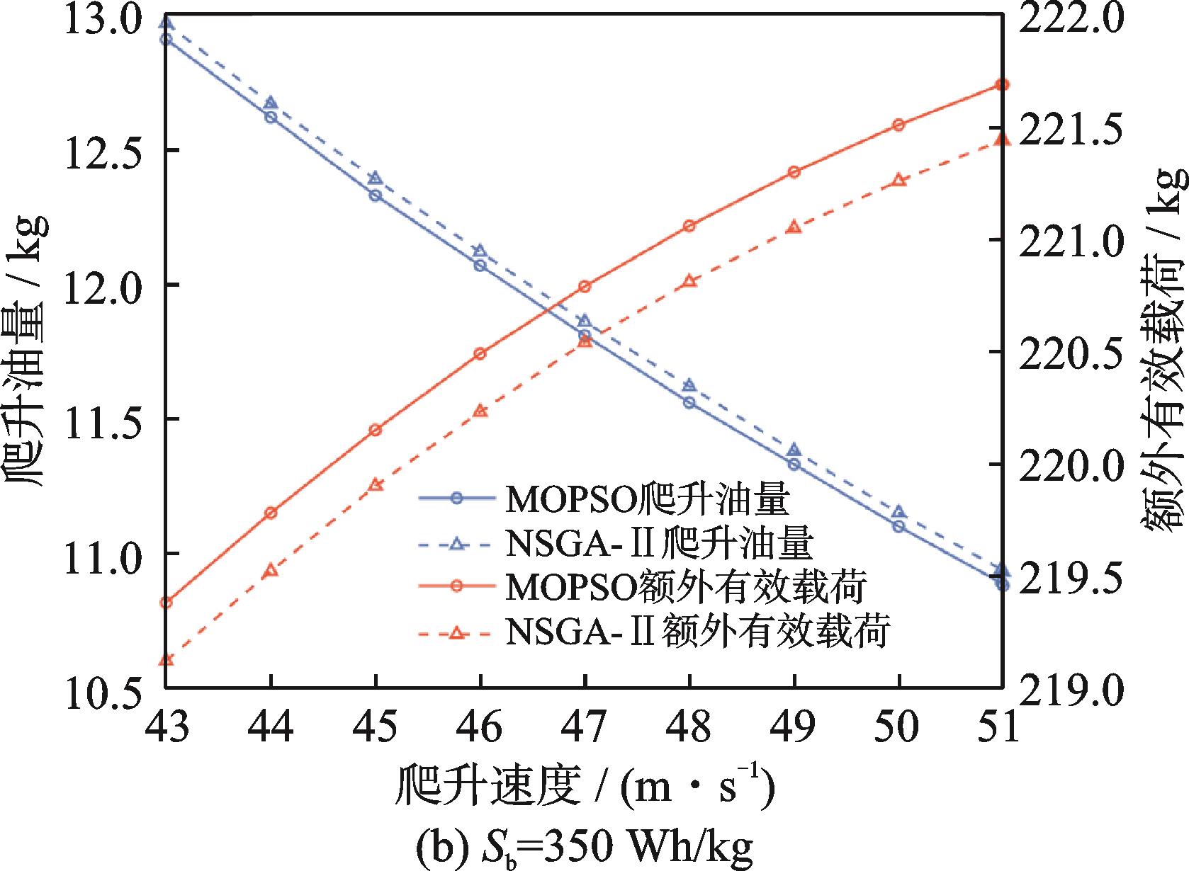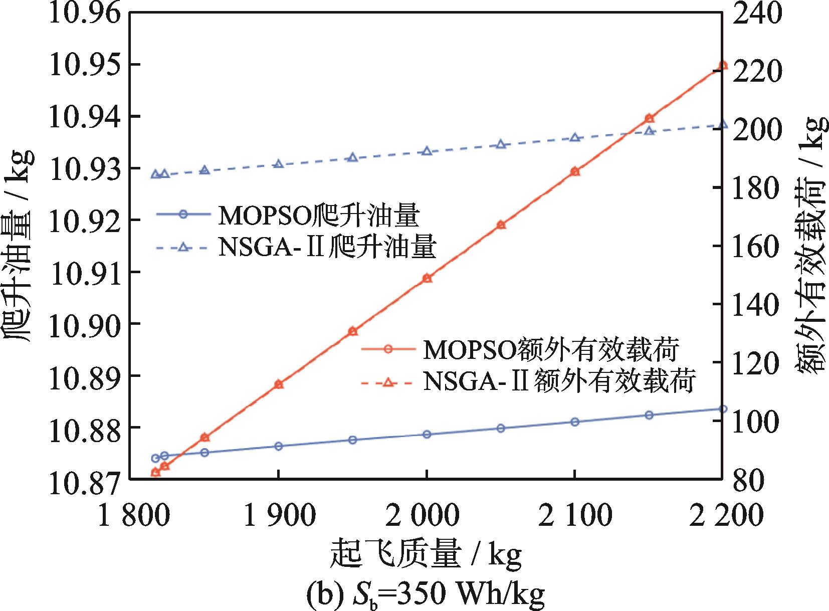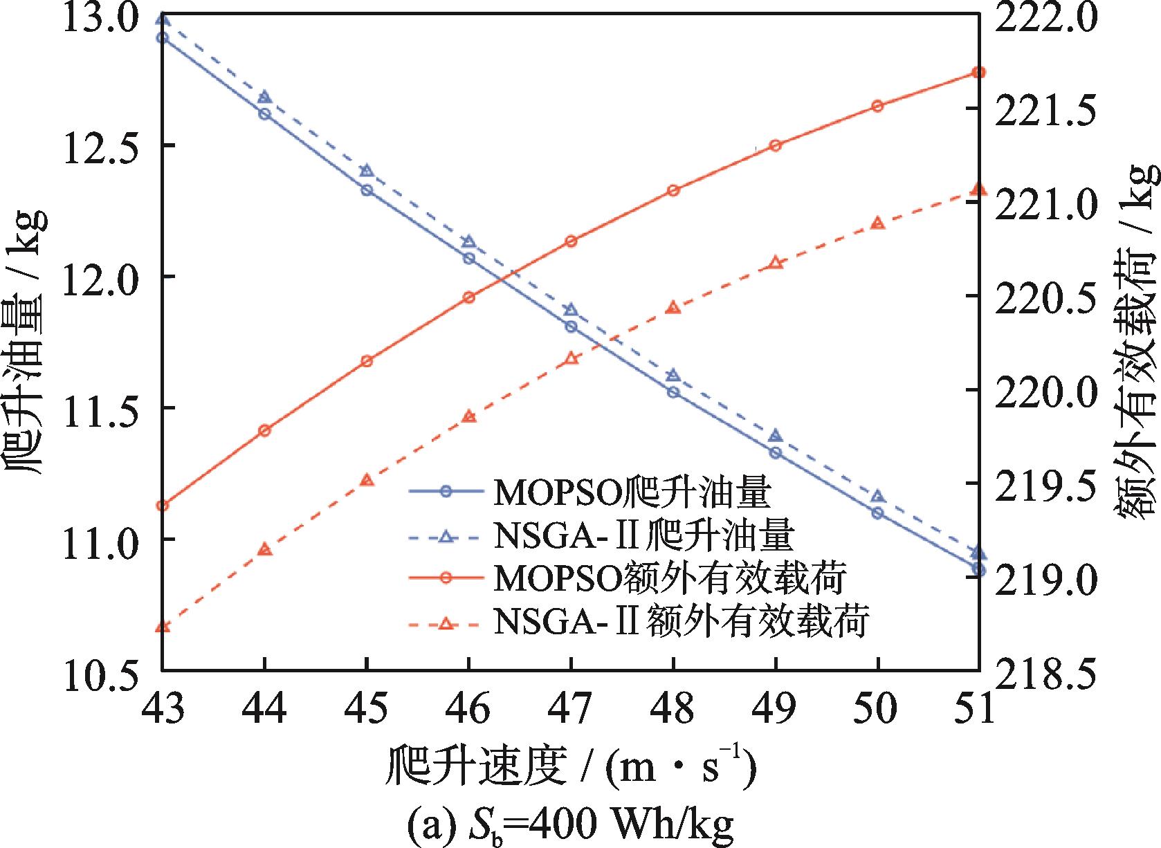 摘要:为了分析混合动力比和电动机数量对小型混合动力飞机爬升性能的影响,以及爬升阶段不同性能参数的选择。根据小型混合动力飞机气动模型和串联结构系统模型,以混合动力比、爬升速度、爬升角、电动机数量和起飞质量作为优化变量,以爬升油量和额外有效载荷作为目标函数,建立混合动力飞机爬升性能优化模型。分别采用多目标粒子群算法和非支配排序遗传算法对某型混合动力飞机进行优化求解和对比分析,并将两种算法的优化结果与国外研究结果进行对比,证明了优化结果的有效性。优化结果表明:两种优化算法对减少飞机爬升油量和增加额外有效载荷均有良好的优化效果。要实现爬升油量最小和额外有效载荷最大的目标需满足:混合动力比为0.99,爬升速度为51 m/s,爬升角为7 °,起飞质量在1 830 kg至2 200 kg之间。
