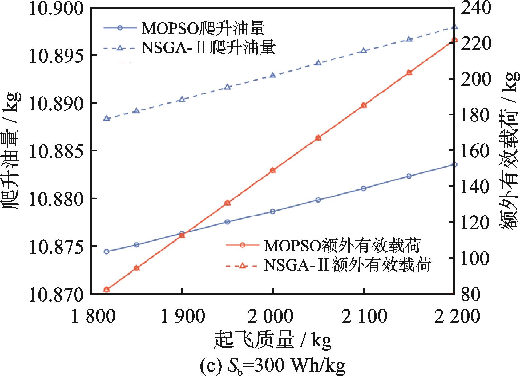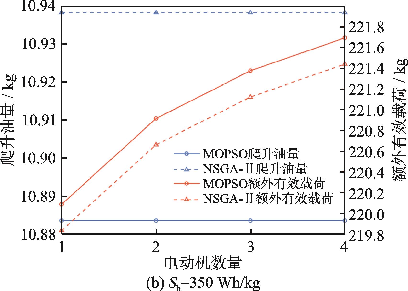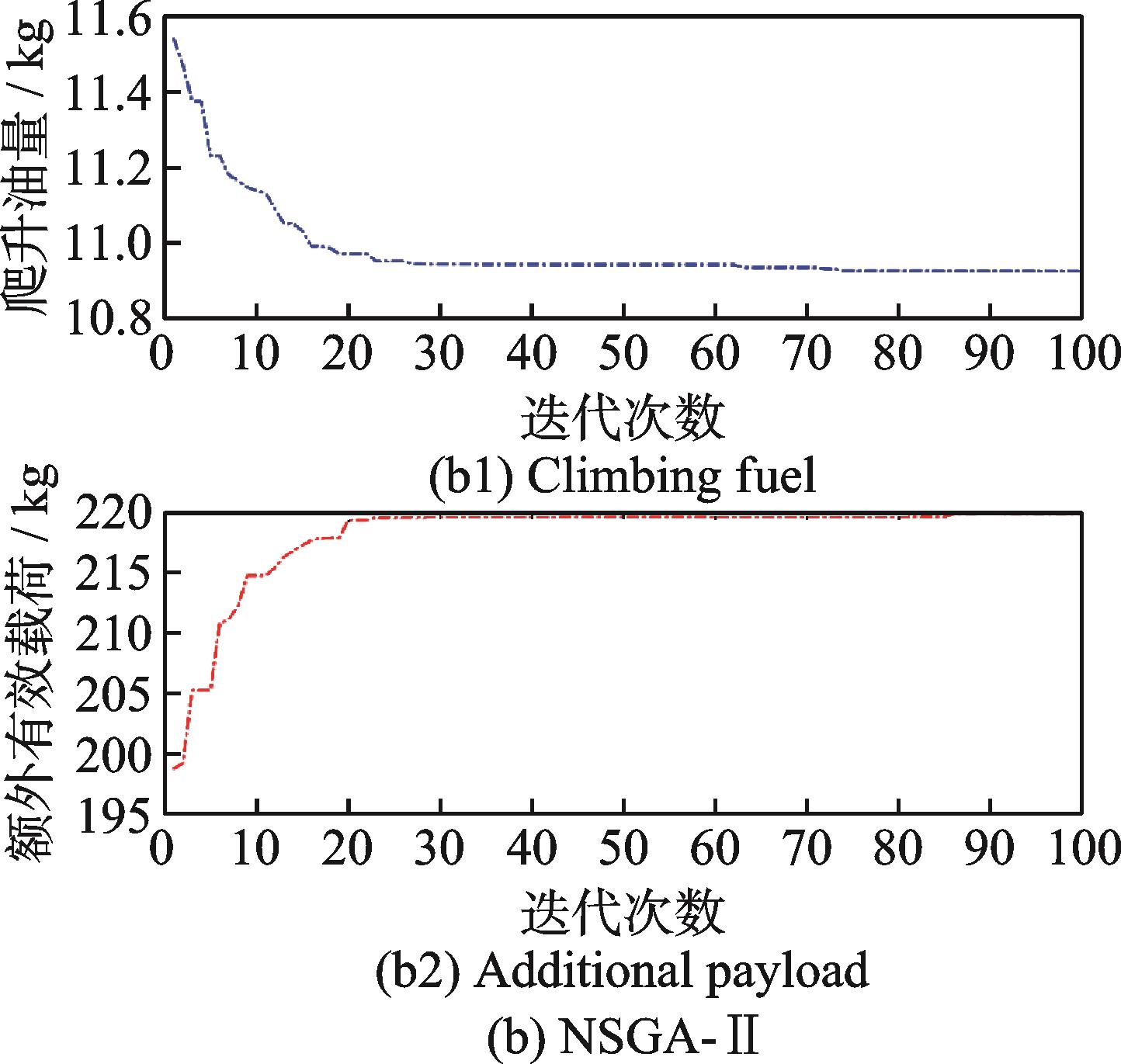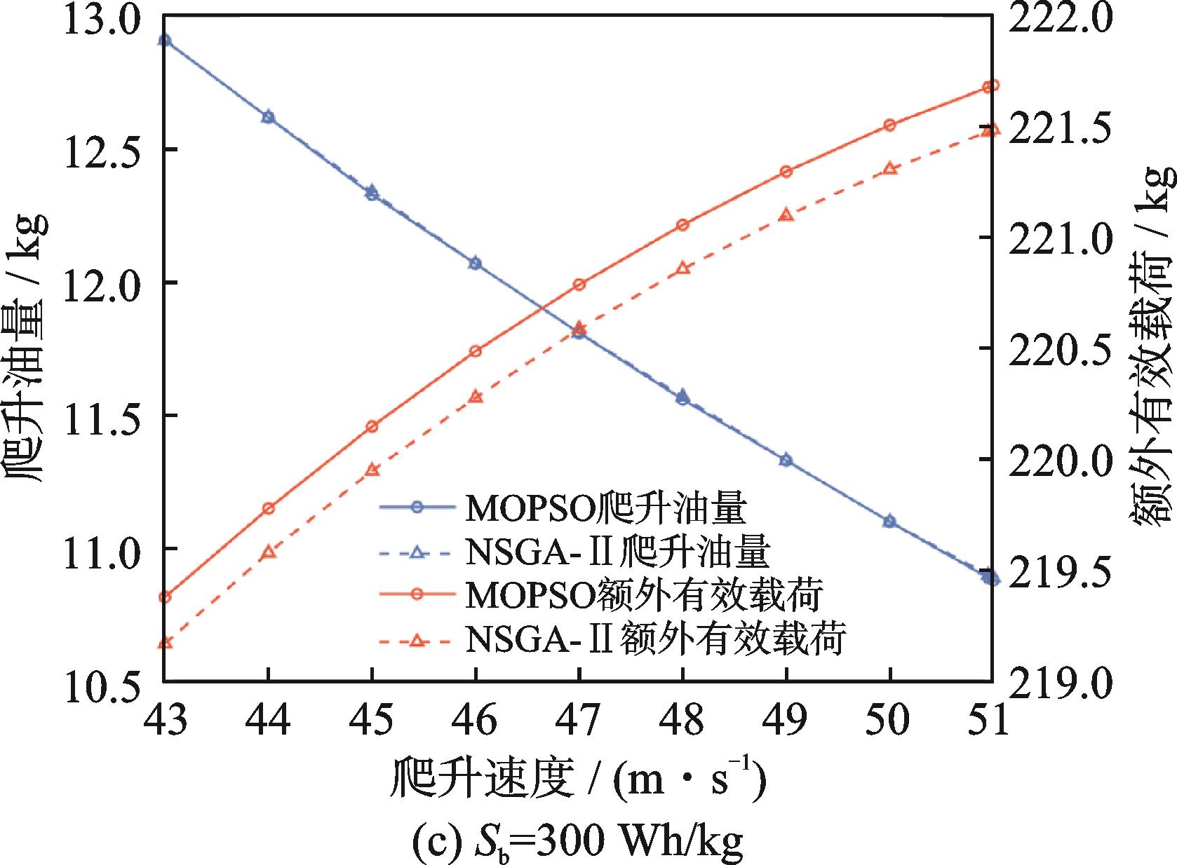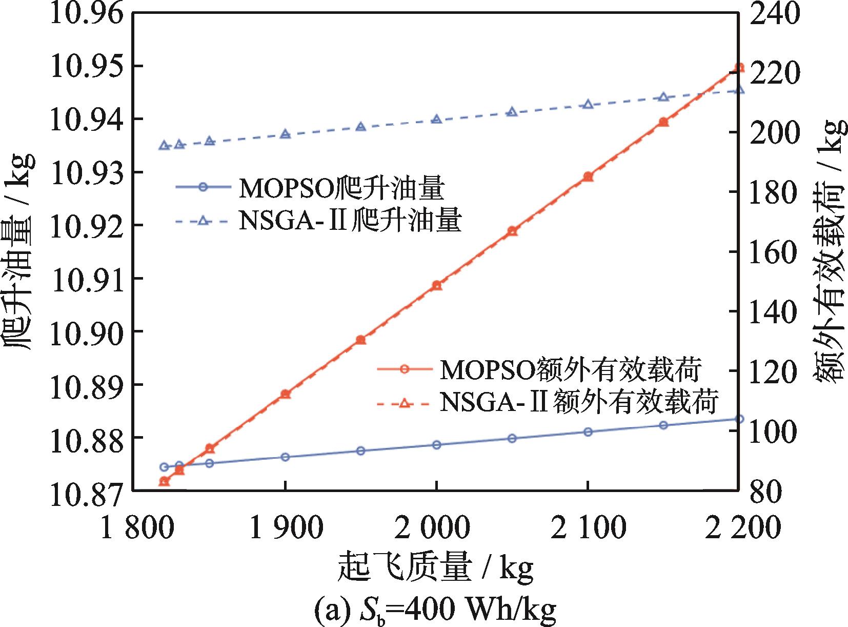 摘要:为了分析混合动力比和电动机数量对小型混合动力飞机爬升性能的影响,以及爬升阶段不同性能参数的选择。根据小型混合动力飞机气动模型和串联结构系统模型,以混合动力比、爬升速度、爬升角、电动机数量和起飞质量作为优化变量,以爬升油量和额外有效载荷作为目标函数,建立混合动力飞机爬升性能优化模型。分别采用多目标粒子群算法和非支配排序遗传算法对某型混合动力飞机进行优化求解和对比分析,并将两种算法的优化结果与国外研究结果进行对比,证明了优化结果的有效性。优化结果表明:两种优化算法对减少飞机爬升油量和增加额外有效载荷均有良好的优化效果。要实现爬升油量最小和额外有效载荷最大的目标需满足:混合动力比为0.99,爬升速度为51 m/s,爬升角为7 °,起飞质量在1 830 kg至2 200 kg之间。