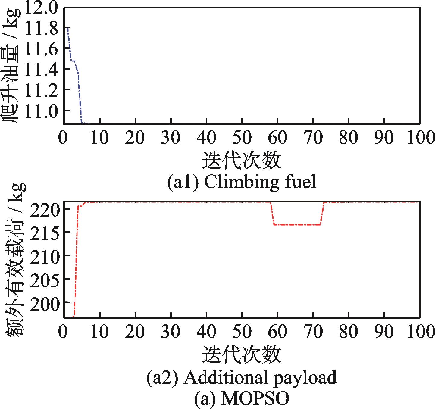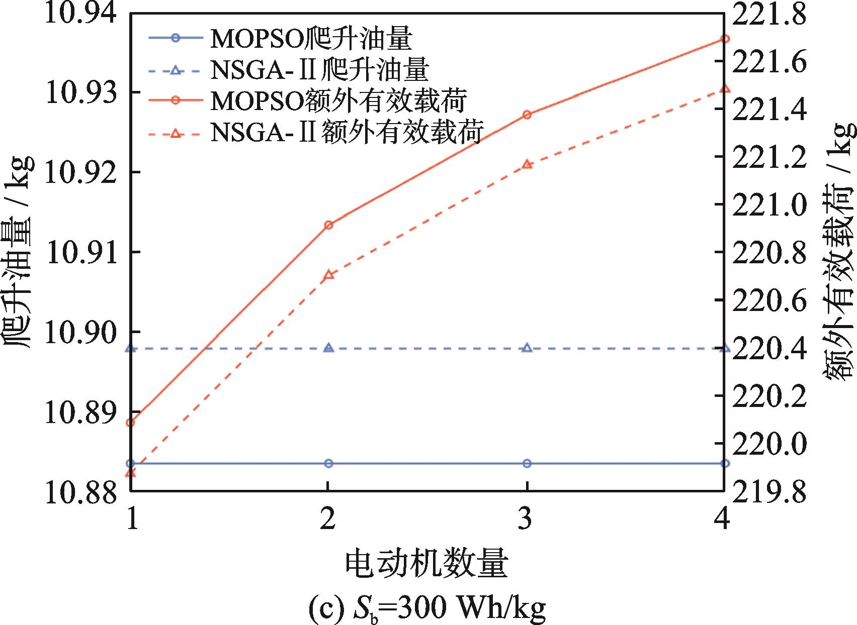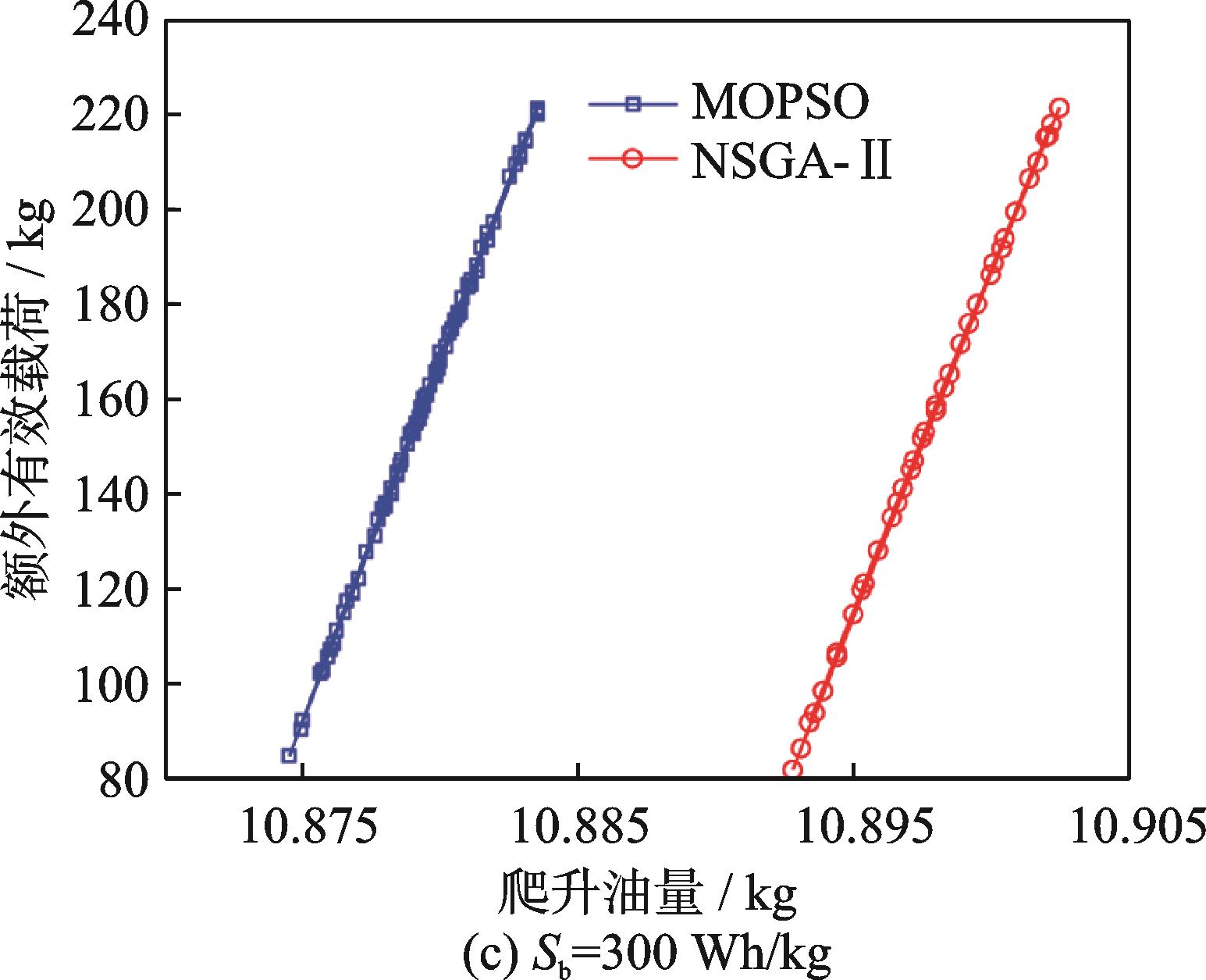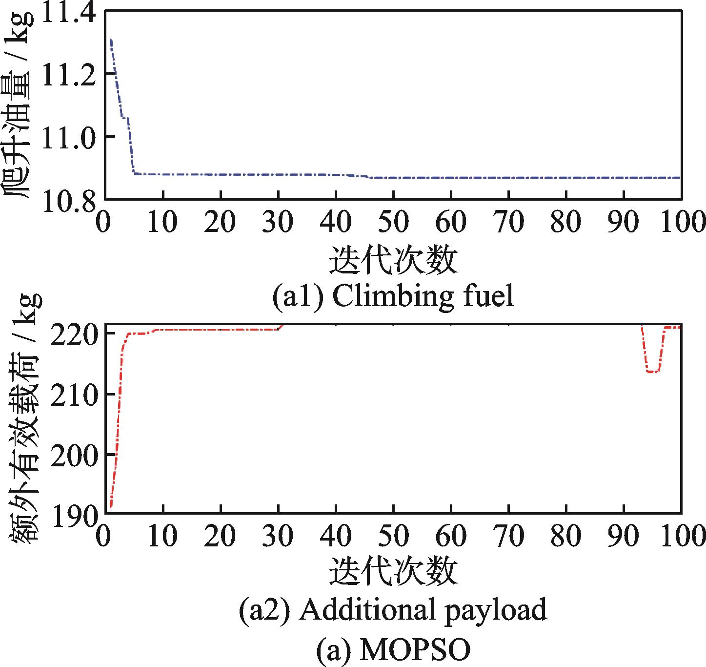 摘要:为了分析混合动力比和电动机数量对小型混合动力飞机爬升性能的影响,以及爬升阶段不同性能参数的选择。根据小型混合动力飞机气动模型和串联结构系统模型,以混合动力比、爬升速度、爬升角、电动机数量和起飞质量作为优化变量,以爬升油量和额外有效载荷作为目标函数,建立混合动力飞机爬升性能优化模型。分别采用多目标粒子群算法和非支配排序遗传算法对某型混合动力飞机进行优化求解和对比分析,并将两种算法的优化结果与国外研究结果进行对比,证明了优化结果的有效性。优化结果表明:两种优化算法对减少飞机爬升油量和增加额外有效载荷均有良好的优化效果。要实现爬升油量最小和额外有效载荷最大的目标需满足:混合动力比为0.99,爬升速度为51 m/s,爬升角为7 °,起飞质量在1 830 kg至2 200 kg之间。