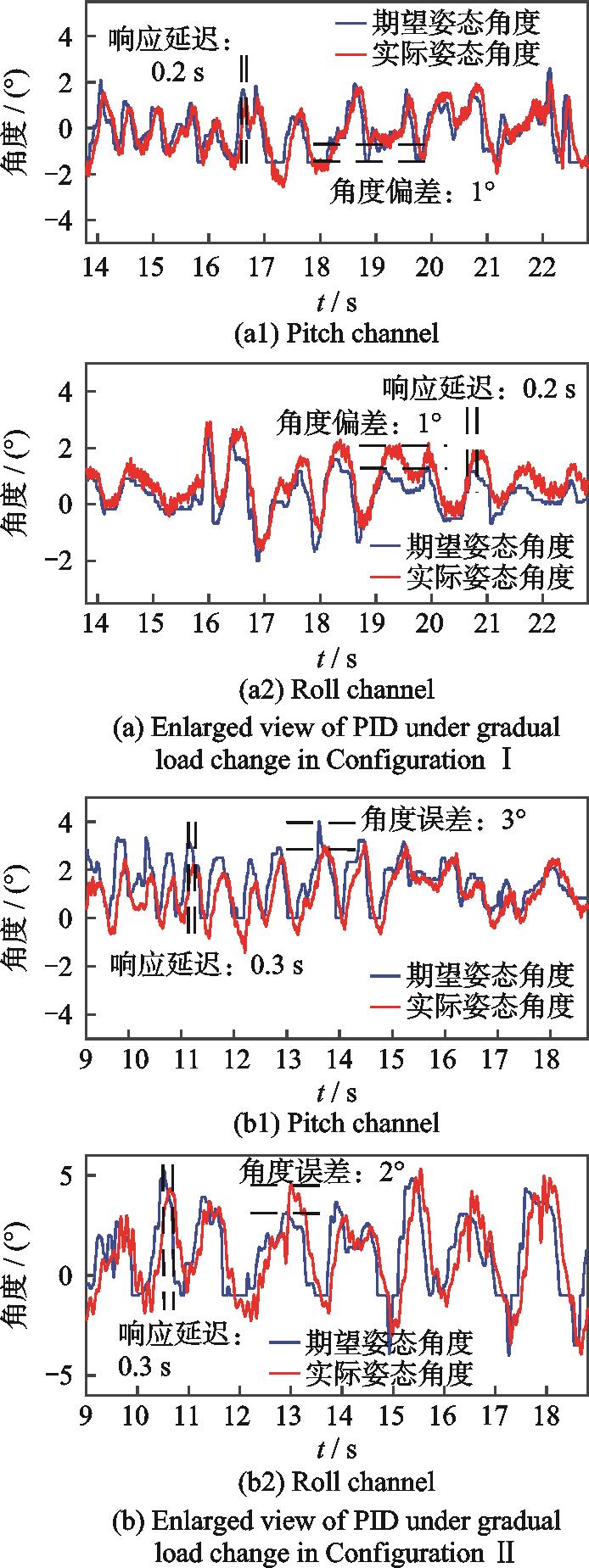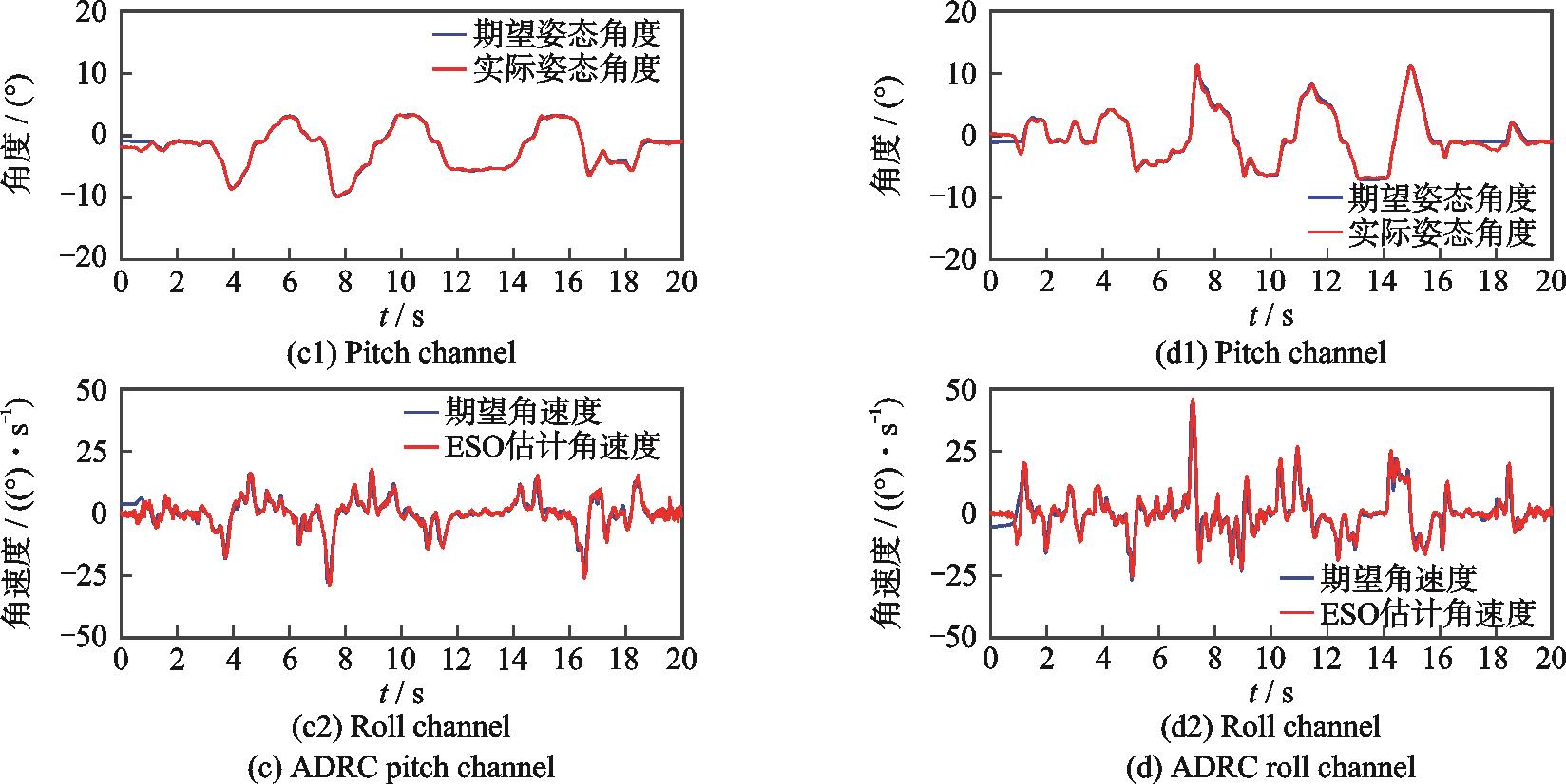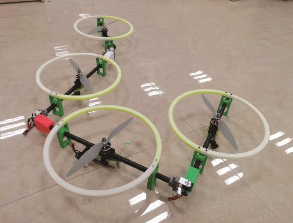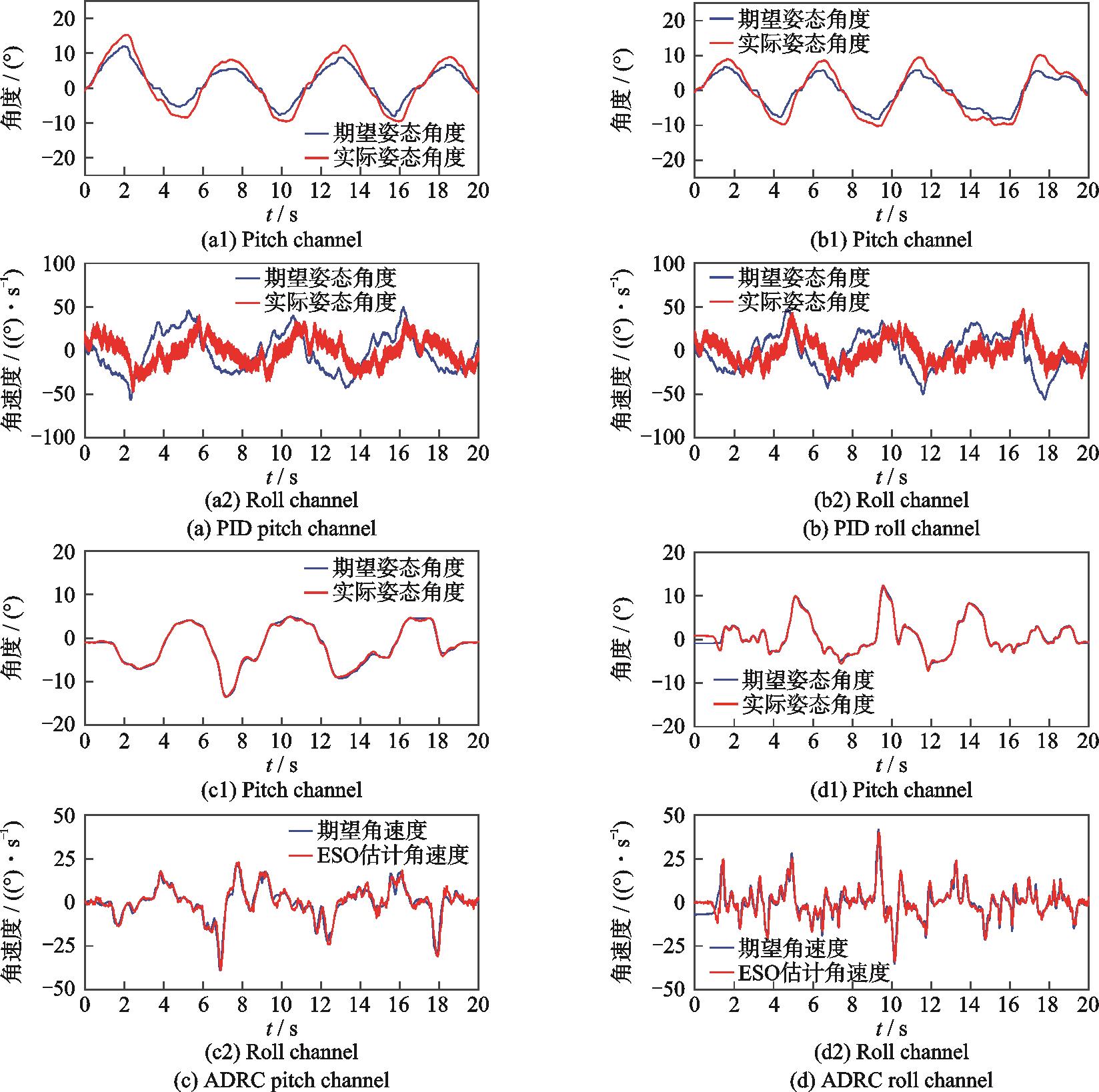 摘要:链式变体旋翼飞行器具有良好的拟态运动条件,但其带载作业易受载荷变化而引起飞行姿态控制稳定问题。为此,本文设计了一种基于自抗扰控制技术(Active disturbance rejection control,ADRC)的飞行器变载荷姿态控制方法。首先,面向变载荷的变体旋翼飞行器构建了动力学模型,分析了载荷变化对飞行器姿态控制的影响;其次,将状态间耦合、载荷变化、内外扰动统一为总扰动,引入扩张状态观测器(Extended state observer, ESO)实现对扰动的跟踪和估计;最后,对飞行器典型构态姿态控制的稳定性、载荷渐变和骤变情况下的姿态控制可行性进行了实飞验证,对比分析了PID与ADRC两种控制器在变载荷姿态控制中的适用性,并进一步分析了变载荷条件下构态转换对飞行器姿态扰动的影响。结果表明,飞行器姿态各轴向角度跟踪偏差最大不超出8°,最大响应时延不超过0.3 s。基于ADRC的变体旋翼飞行器姿态控制体现了良好的稳定性和鲁棒性,为变体旋翼飞行器带载作业能力构建提供了技术参考。
