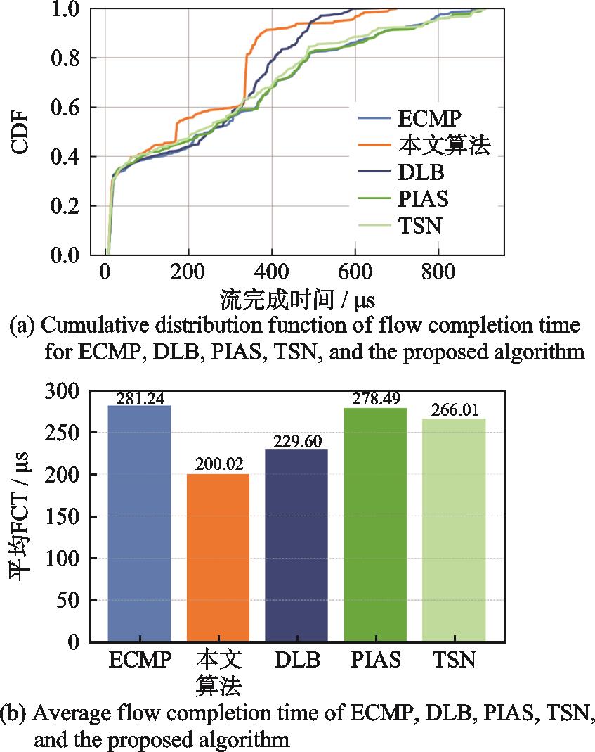 摘要:现代机场通信网络在智慧机场建设背景下,面临着保障航空管制等安全关键业务确定性低时延与满足视频监控、数据中心存储业务等高吞吐量传输的双重挑战。现有优先级调度与负载均衡算法存在固有局限性,仅能单一地满足低时延或高吞吐量需求。针对这一问题,本文提出基于时间敏感网络的多级负载均衡算法。首先,建立动态优先级调度机制,构建符合机场业务等级的优先级映射关系并支持临时优先级调整,以保障关键业务低时延传输;其次,设计基于排队时延的单级负载均衡机制,精确量化链路传输能力,实现业务流的最优出口决策;最后,通过多优先级队列状态管理机制,将动态优先级调度与单级负载均衡有机融合,实现多优先级的出口链路决策,从而最大化带宽资源利用率,显著提升网络吞吐量。实验结果表明,相较于等价多路径(Equal-cost multi-path,ECMP)路由算法、基于时延的负载均衡(Delay-based load balance,DLB)算法、先验信息未知流调度(Practical information-agnostic flow scheduling,PIAS)算法和时间敏感网络(Time-sensitive networking,TSN)优先级调度算法等基准方案,本文算法将机场关键业务流时延降低63%且整体业务流吞吐量最大提升40%,有效缓解了机场通信网络中“低时延-高吞吐量”的复合需求矛盾。