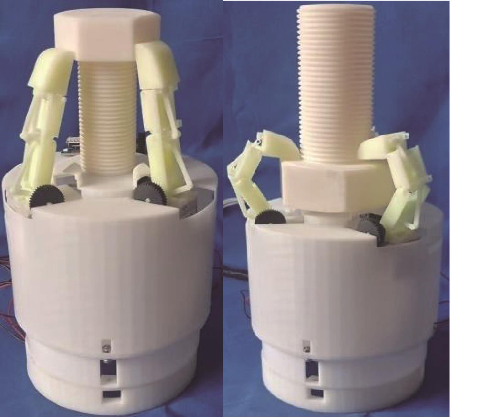 摘要:为满足航天器在轨维护等高风险任务对高可靠操作工具的迫切需求,针对多指机械手在非结构化环境中面临的稳定性与适应性难题,本文提出了一种涵盖静力学、运动学与动力学的多层次耦合建模方法。通过拓扑优化与变刚度原理构建欠驱动手指构型,采用D-H(Denavit-Hartenberg)参数法建立精确捏取与包络抓取的位姿变换模型,并结合牛顿-欧拉方程与拉格朗日动力学理论推导多体耦合动力学方程。仿真与平台实验验证表明:在400 N·mm驱动力矩下,三指接触力稳定于5~6 N范围,旋拧阶段末端速度收敛至0.332 m/s,验证了所提方法的动态稳定性与抗干扰能力。本研究成果为精密操作领域提供了理论支撑,并可拓展至月面手术机器人操作等场景。