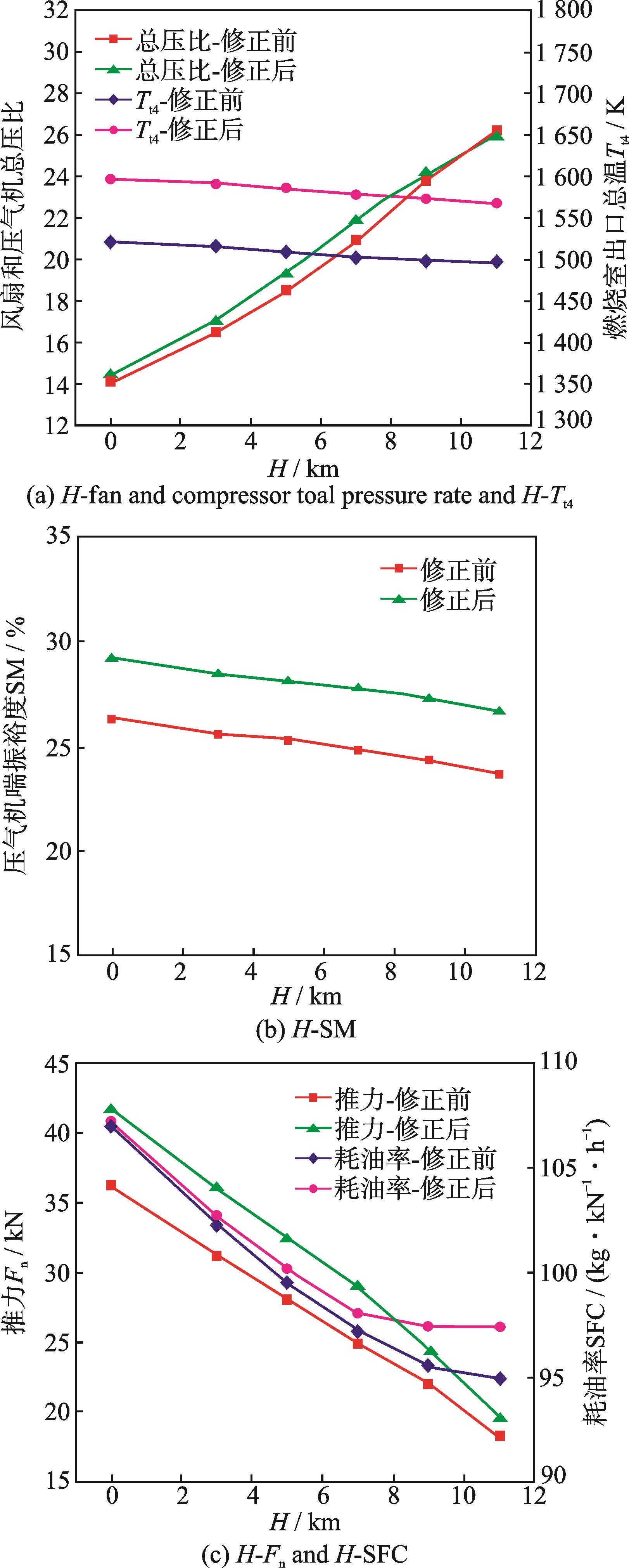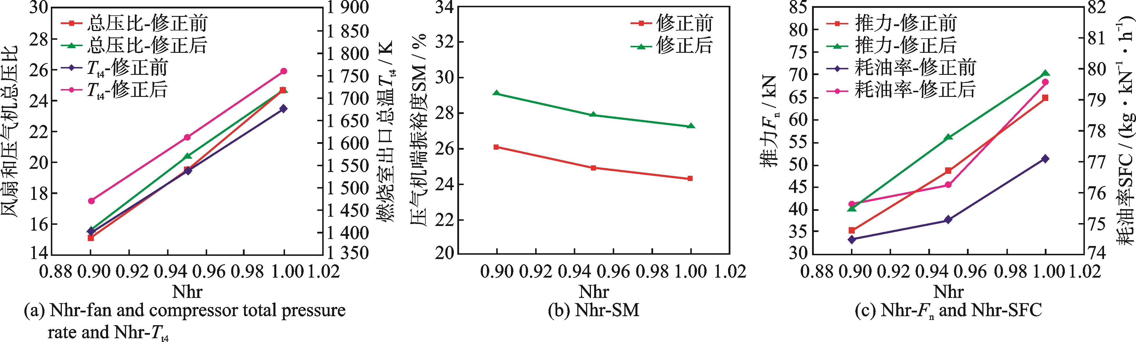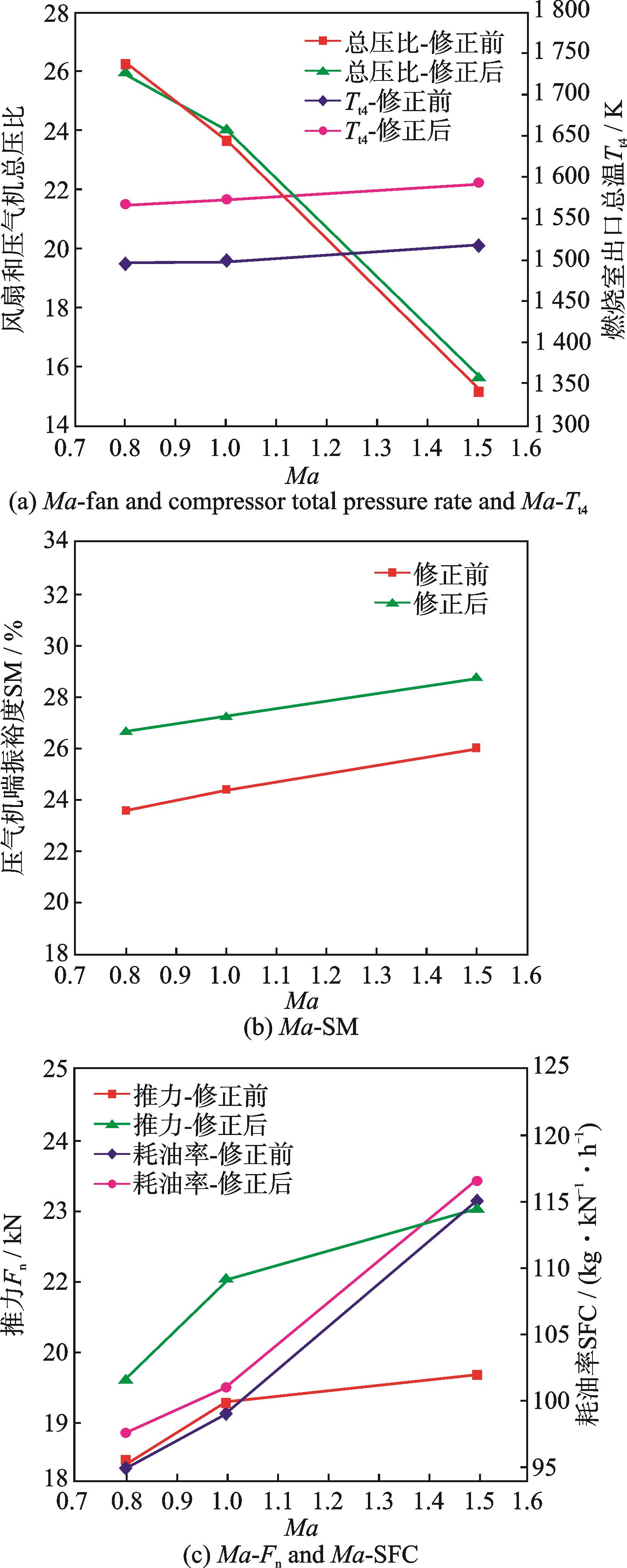 摘要:为提升航空发动机整机性能仿真预测精度,以双轴混排涡扇发动机为研究对象,在整机性能仿真模型中耦合压气机级间引气和涡轮冷气修正模型,研究了不同转速下压气机级间引气修正、涡轮冷气修正以及两者耦合对发动机整机性能的影响,并评估了耦合修正对发动机节流、高度及速度特性的影响。研究结果表明:耦合压气机级间引气与涡轮冷气修正模型前后,发动机整机性能仿真结果存在明显差别;在高压转子相对转速Nhr=100%状态下,进气流量增加了3.8%,高压压气机喘振裕度提升了3.0%,燃烧室出口总温增加了4.9%,推力增加了8.4%,耗油率增加了3.2%;通过对地面节流特性、高空巡航特性和速度特性影响分析得到,耦合修正不会改变发动机特性变化趋势,耦合修正后发动机的性能整体上优于耦合修正前,并且变化幅度明显。表明在整机仿真中,详细考虑压气机级间引气和涡轮冷气修正可使仿真结果更趋真实因而提高整机性能仿真精度。